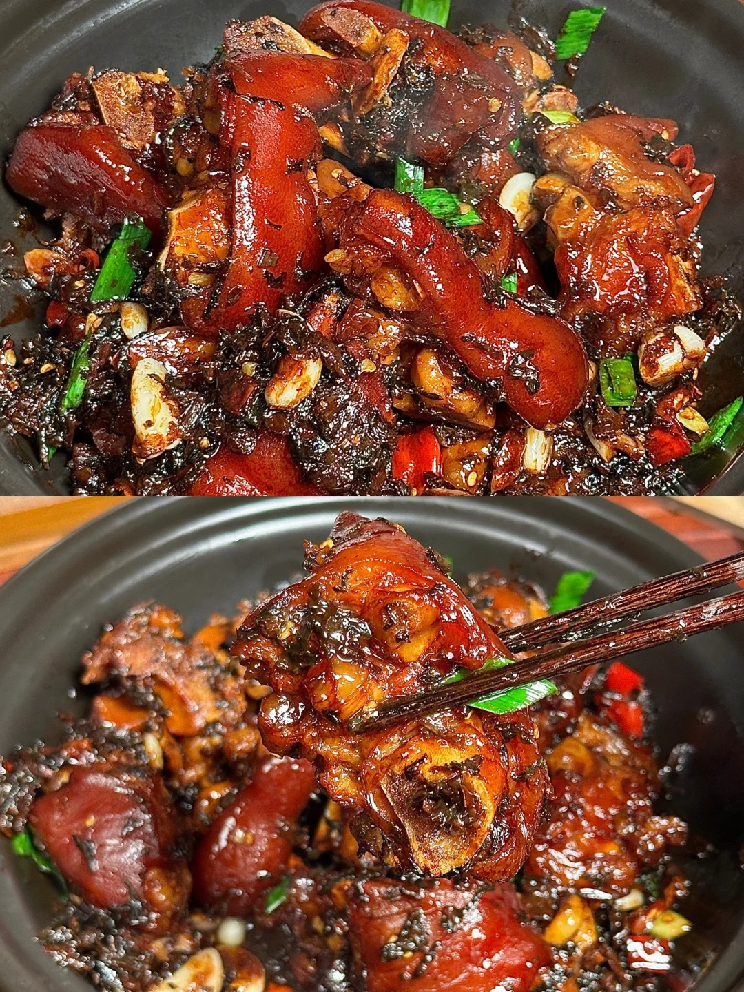 今天做了江西口味的梅干菜烧猪蹄,得到全家人一至好评👍味道真的绝杀