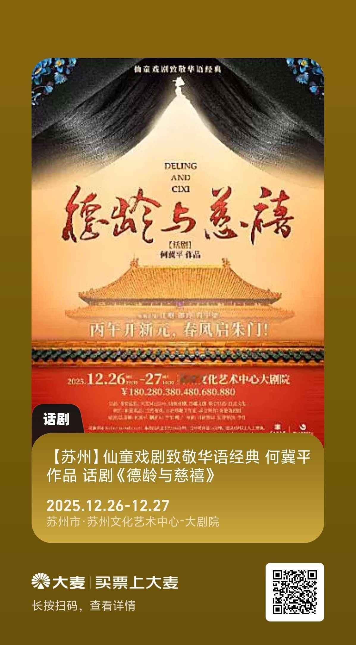 ‼️今日中午11:00苏州场《德龄与慈禧》开票‼️