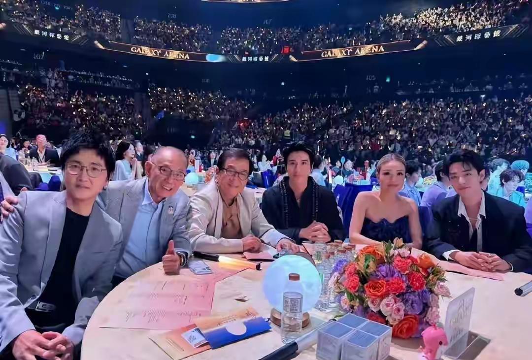 瞧这座位的排次,他莫不是有极硬的后台?居然能和英皇老板杨受成、成龙、王力宏这些大
