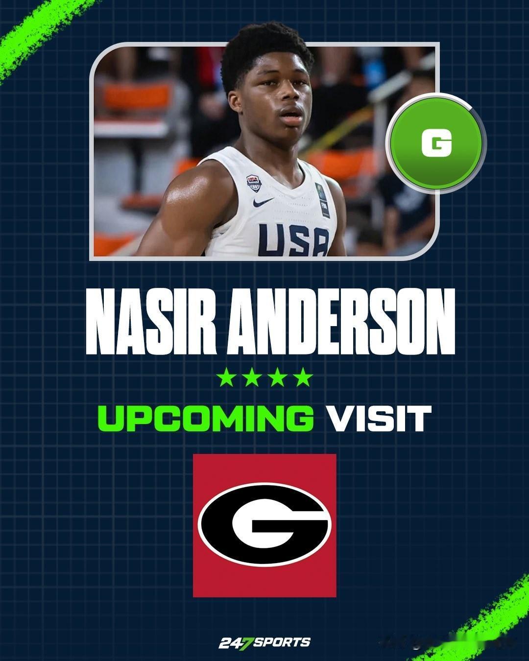 五星控卫Nasir Anderson访问家乡球队佐治亚大学,高三赛季转学至佛罗里达州Prolific Prep,身高6-4=193,今夏帮助美国夺得U16美锦赛冠军,赛事场均得到12.3分6.8助攻3.5抢断2.3篮板荣获MVP,同行的还有约什-史密斯的儿子Josh Smith Jr,就读于佐治亚州Norcross高中。