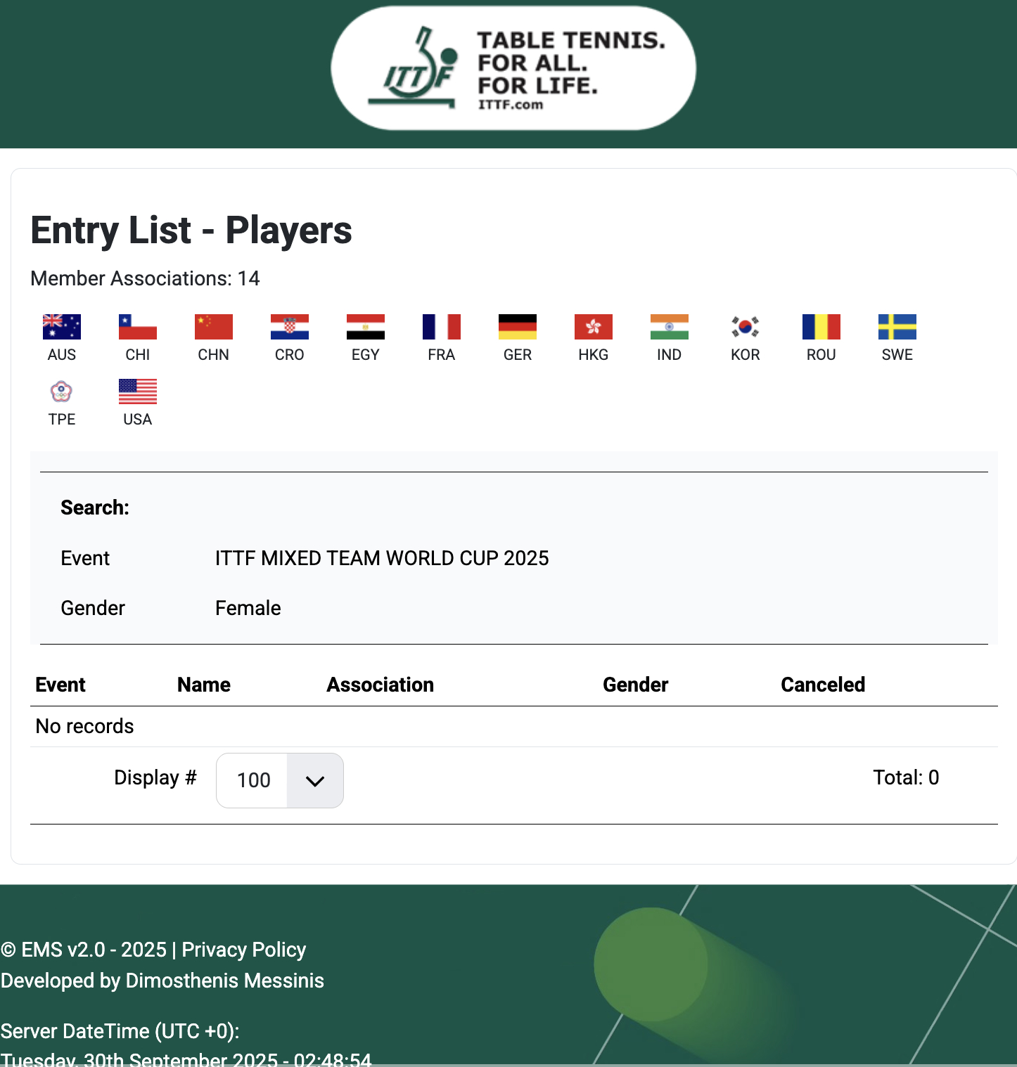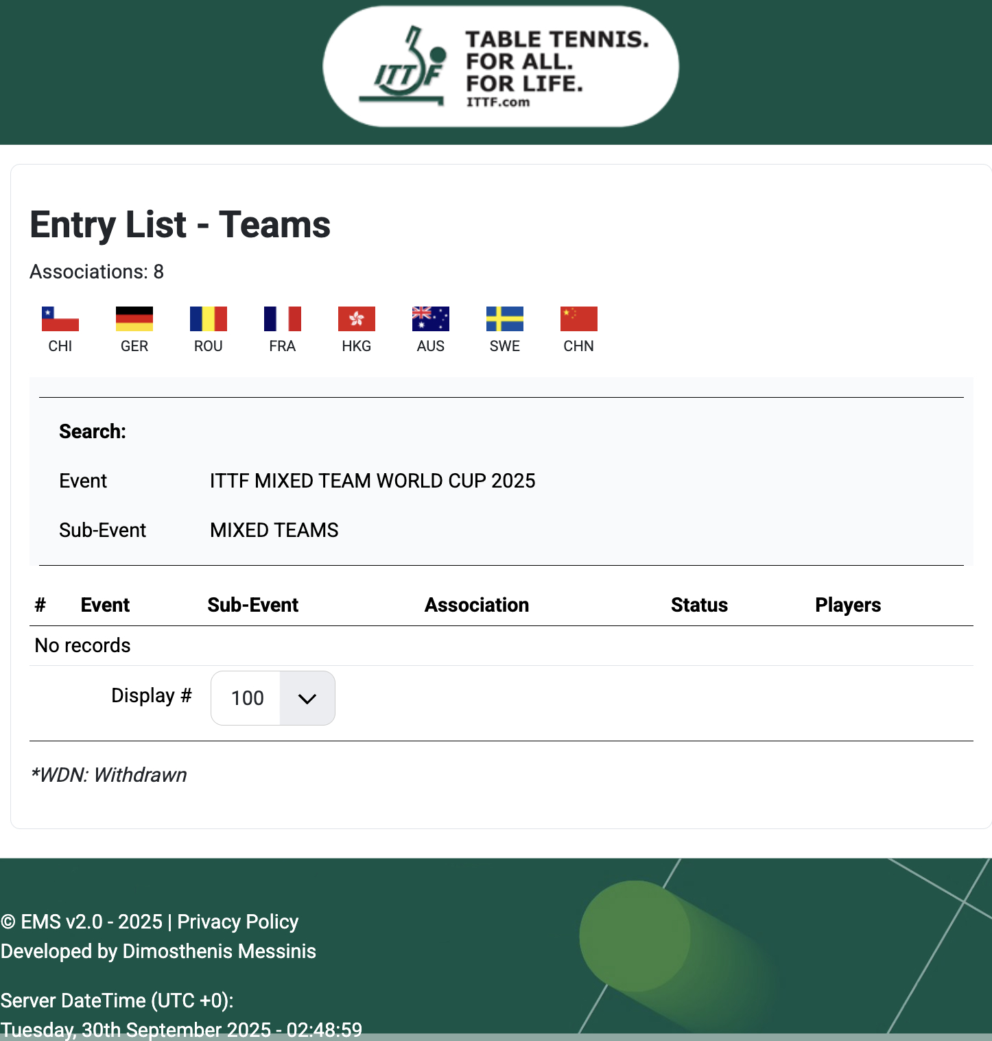 中国队🇨🇳已报名2025成都国际乒联混合团体世界杯