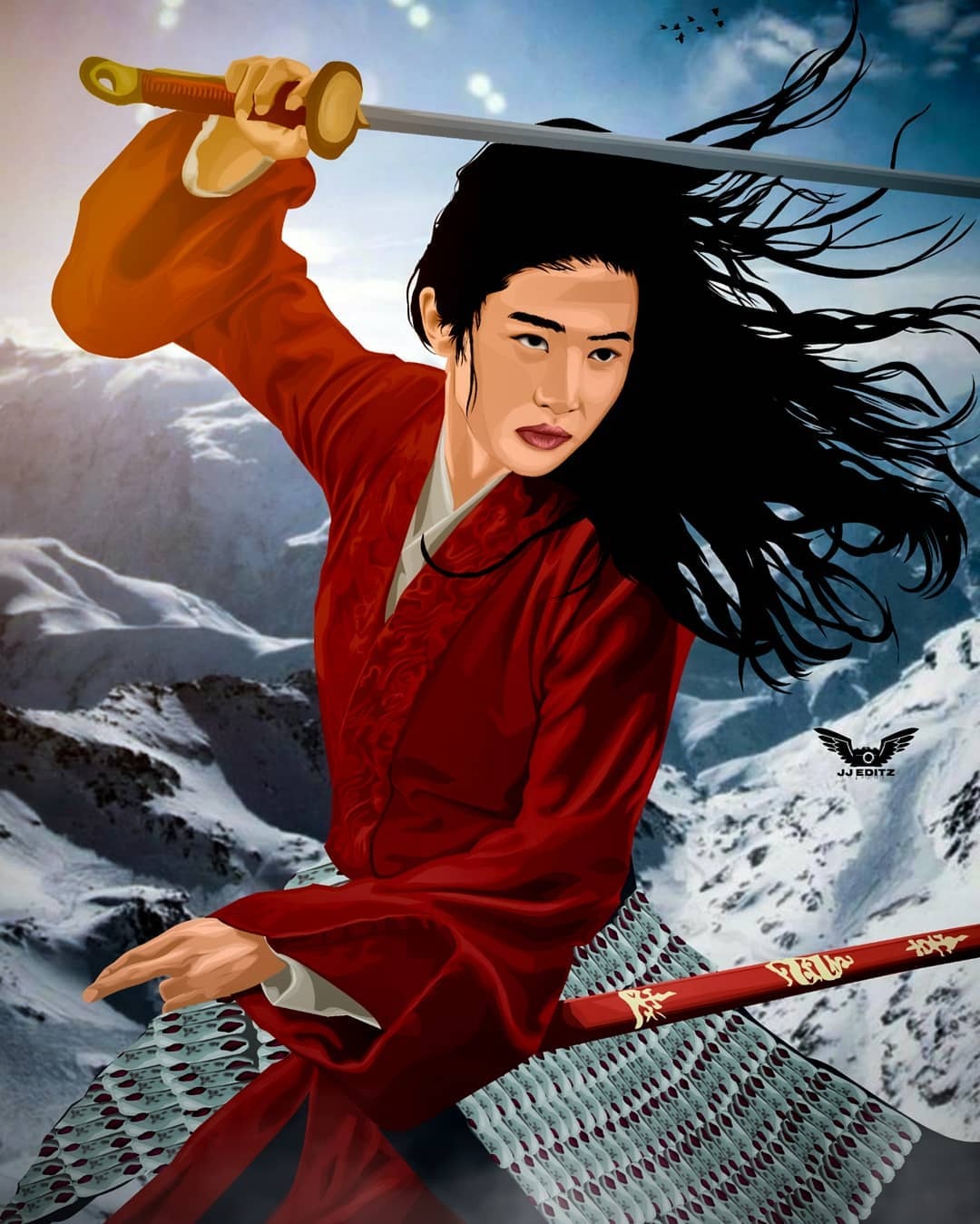 Ins上来自印度的artist_jitenjain创作的刘亦菲花木兰执剑fan art⚔️,他还有很多电影icon的形象创作,我们Mulan全球大爆电影和角色的含金量还在上升[阴险],全球影史留名的东方红衣女将军❤️