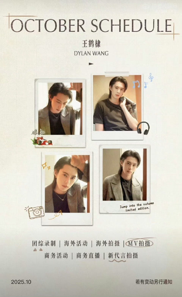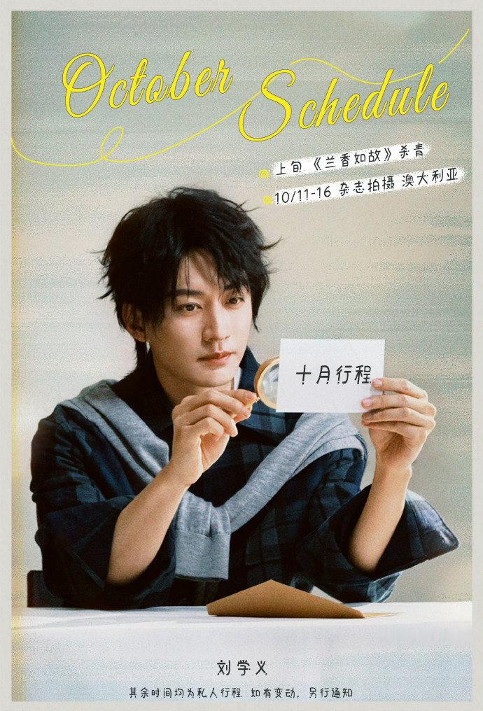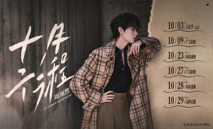 王鹤棣、刘宇、曾舜晞、侯明昊、敖瑞鹏、王星越、胡一天、周翊然、田嘉瑞、丞磊、刘学义、刘轩丞 李昀锐十月行程图