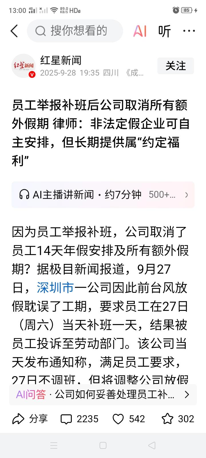 公司因为台风放假耽误了工期,安排周六调班儿赶一天工,被员工举报投诉到劳动部门,这是位什么样的员工呢?是企业不好?经常加班儿?还不给加班儿费?加班不给调休? 据说该企业经常违反国家统一的法定节假日制度,什么圣诞节、万圣节都放半天假,春节更是14天的带薪假,这不是公然违反国家法定节假日制度吗?难怪会被员工投诉,人家只想休国家法定的节假日,公司你怎么能不按国家规定的节假日制度办呢?难怪人家一告一个准,可惜我们怎么就遇不上这样的企业呢?