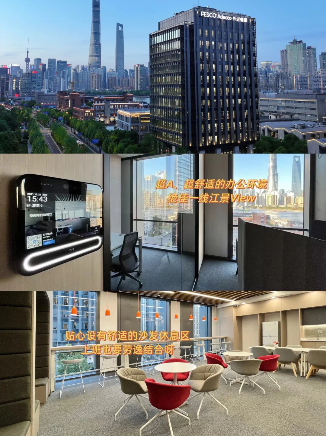 💡还有超A的办公环境,绝佳一线江景View +神仙露台,甚至还有舒适的沙发休息区,这样的环境上班心情都会好很多呀~