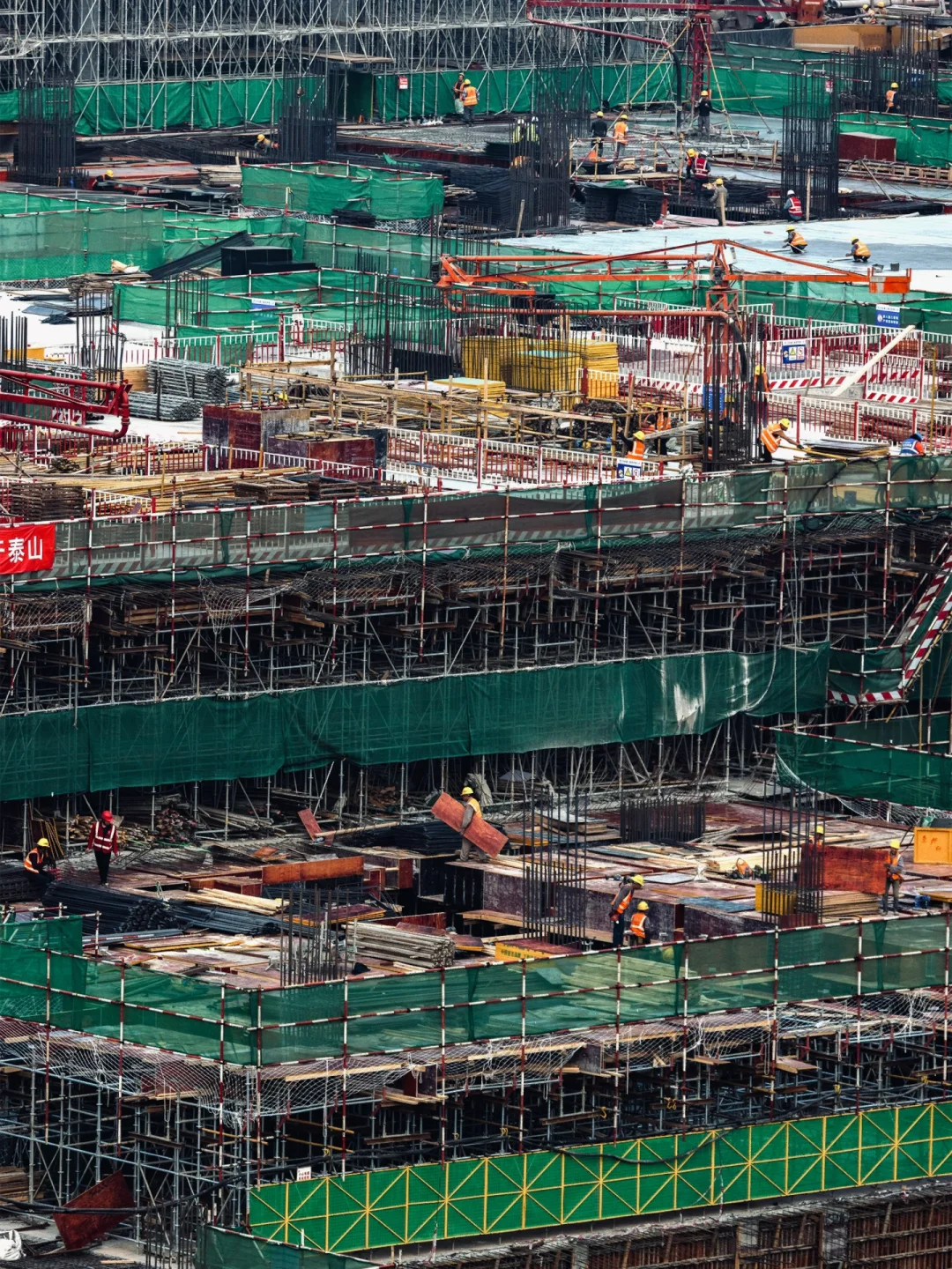无数的复杂结构,支撑起超级工程的建设,结构中的工人靠机械与双手化腐朽为神奇,平地高楼,气壮山河。