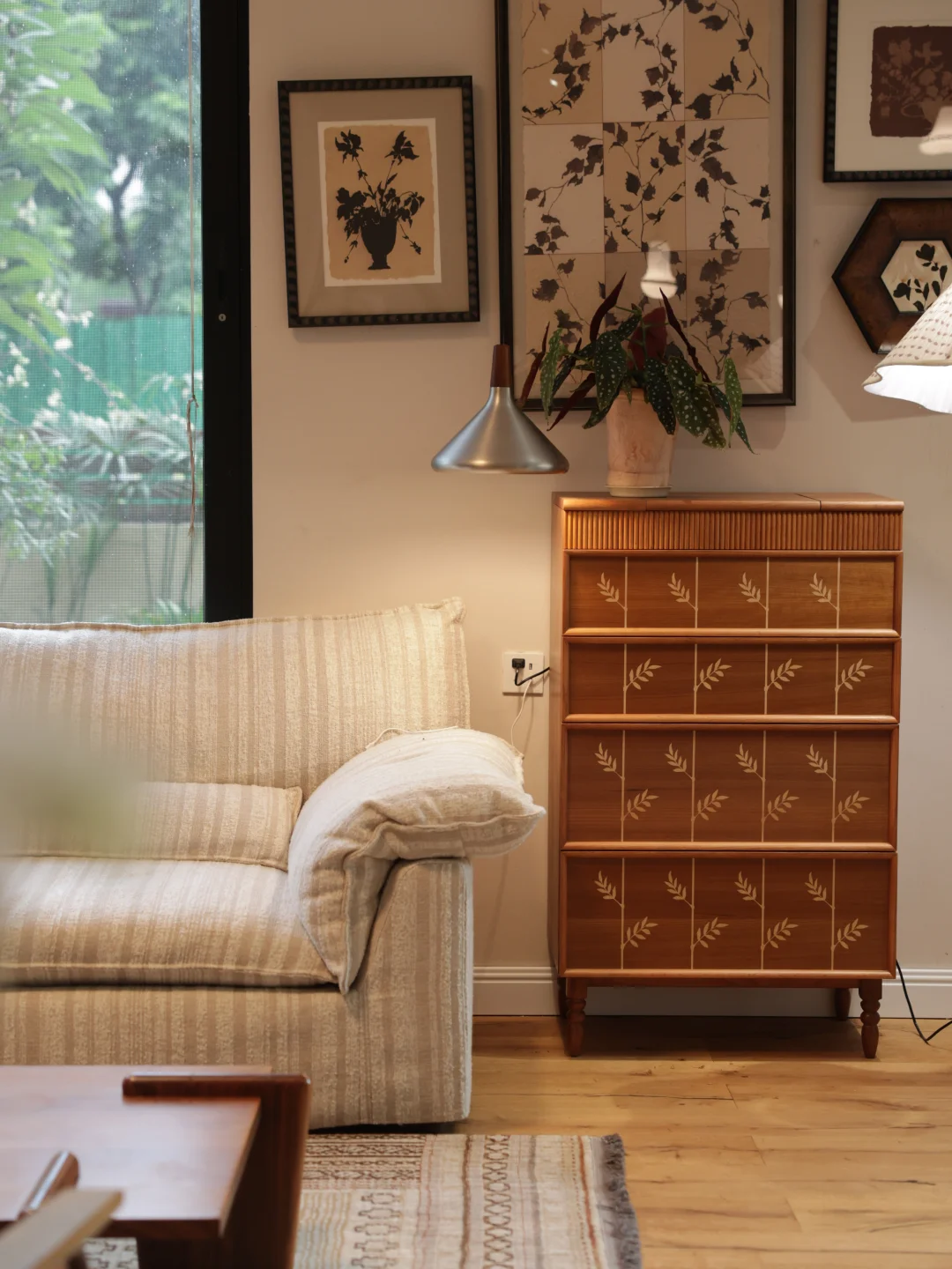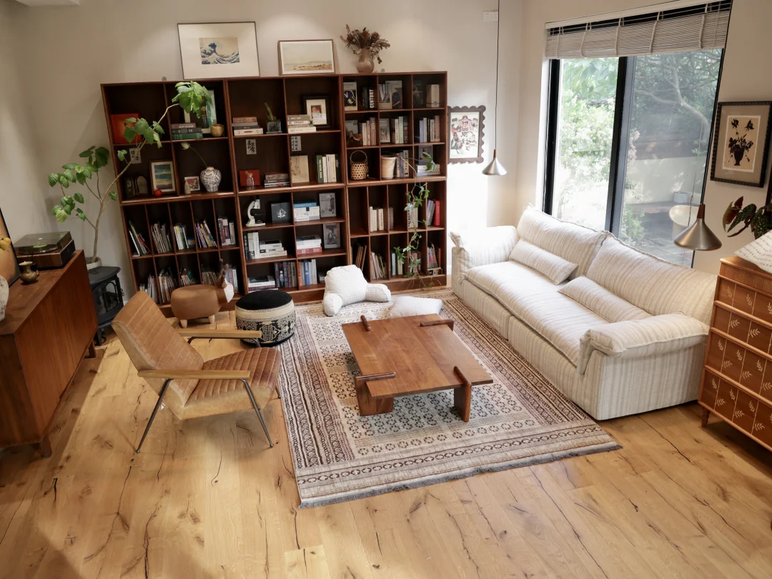 客厅的木地板用了浅色大板,显得空间宽敞明亮了许多
