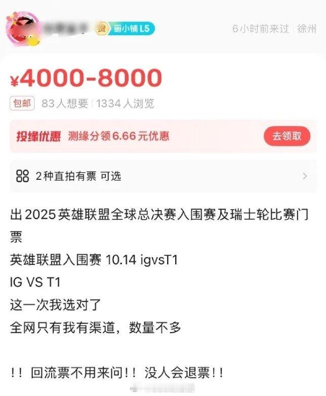 逆天了😅IGvsT1的门票已炒至最高8K:回流票别问 没有人会退票
