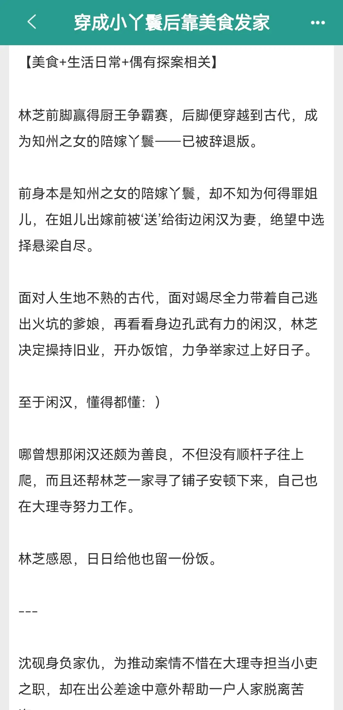 穿成小丫鬟后靠美食发家。作者食用须知:1.主种田经营美食(80-9...