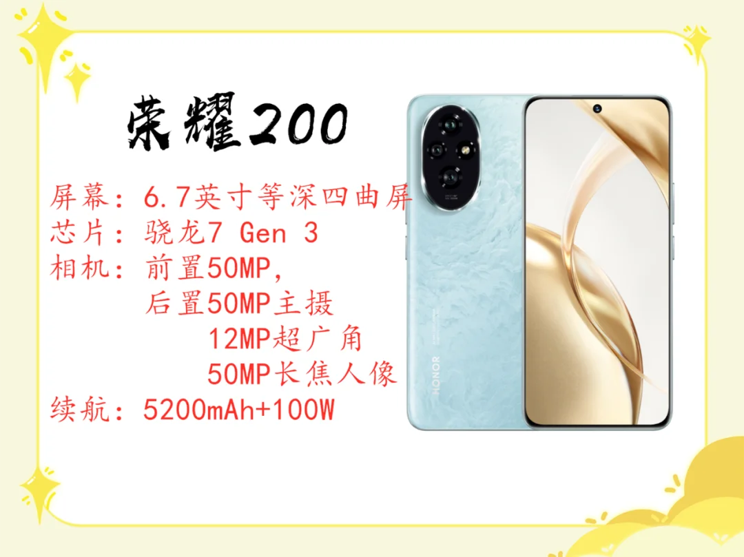 荣耀200标准版搭载骁龙7 Gen 3,这款芯片相当于制程更先进的骁龙865,能效更出色,日常使用或者普通游戏下足够使用了。