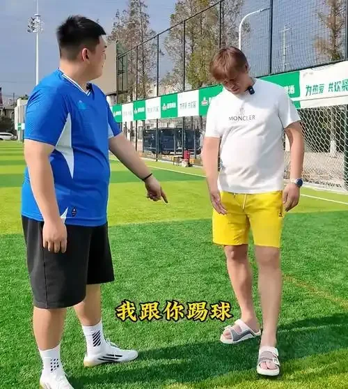 比赛过程中,两人的互动更是让人忍俊不禁。一次,“刘能”好不容易抢到球,正准备射门,“赵四”却突然冲过来,一个“滑铲”把球抢走,还得意地扭着标志性的歪嘴,喊道:“想进球?没那么容易!”“刘能”哪肯罢休,立马追上去,两人在球场上你追我赶,一会儿拉扯,一会儿拌嘴,把赛场变成了“小品舞台”。