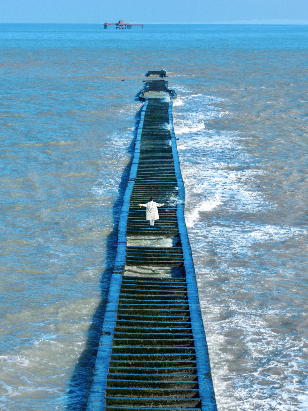海上长城的宏伟景观如长龙卧波,令人震撼!是电视剧《迎风的青春》打卡地