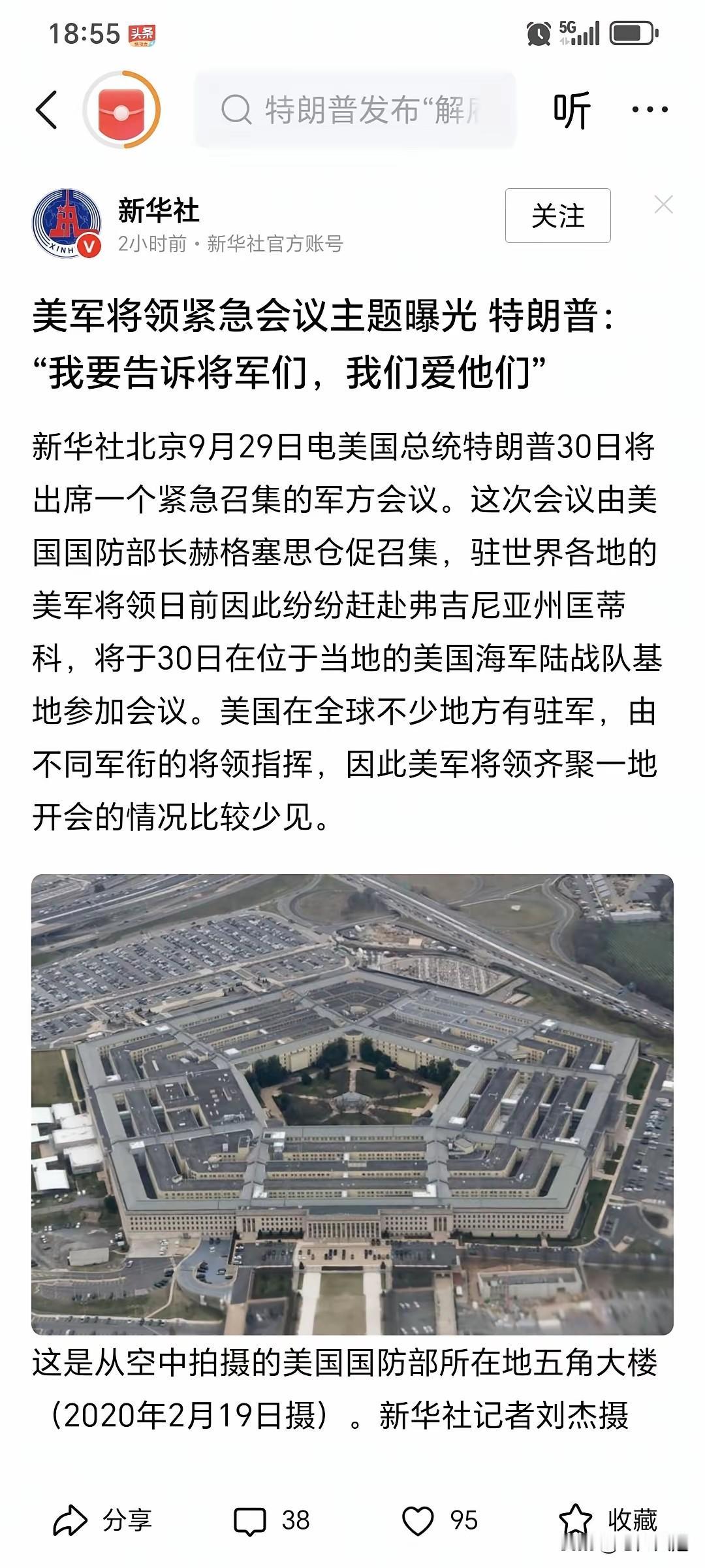 烽火戏诸侯!美国几百名将领被召回,本以为美国又要干哪个国家了,可是特朗普发话了,也没啥大事,就是想他们了,告诉他们,我们爱他们。这操作也只有特朗普才能干的出来,估计这帮将领也在懵逼中,在通常的情况下,只有在涉及特大型演习的战略推演,比如冷战时期的全面作战模拟。还有在战争前的战略统一会议。比如伊拉克战争前,五角大楼曾召集过较多高层军官齐聚一堂共商战事。可是在这些情况都不存在,看来特朗普主要是显摆显摆自己的号召力,这和当年的烽火戏诸侯有异曲同工之妙,在西周末年周幽王为博褒姒一笑,多次点燃烽火戏弄诸侯,最终导致西周灭亡的典故,反映了君主昏庸无道和诚信的重要性。现在的美国如同西周一样,已经处于末期,如果特朗普再来上几次这样的事件,估计结果将会和西周一样。