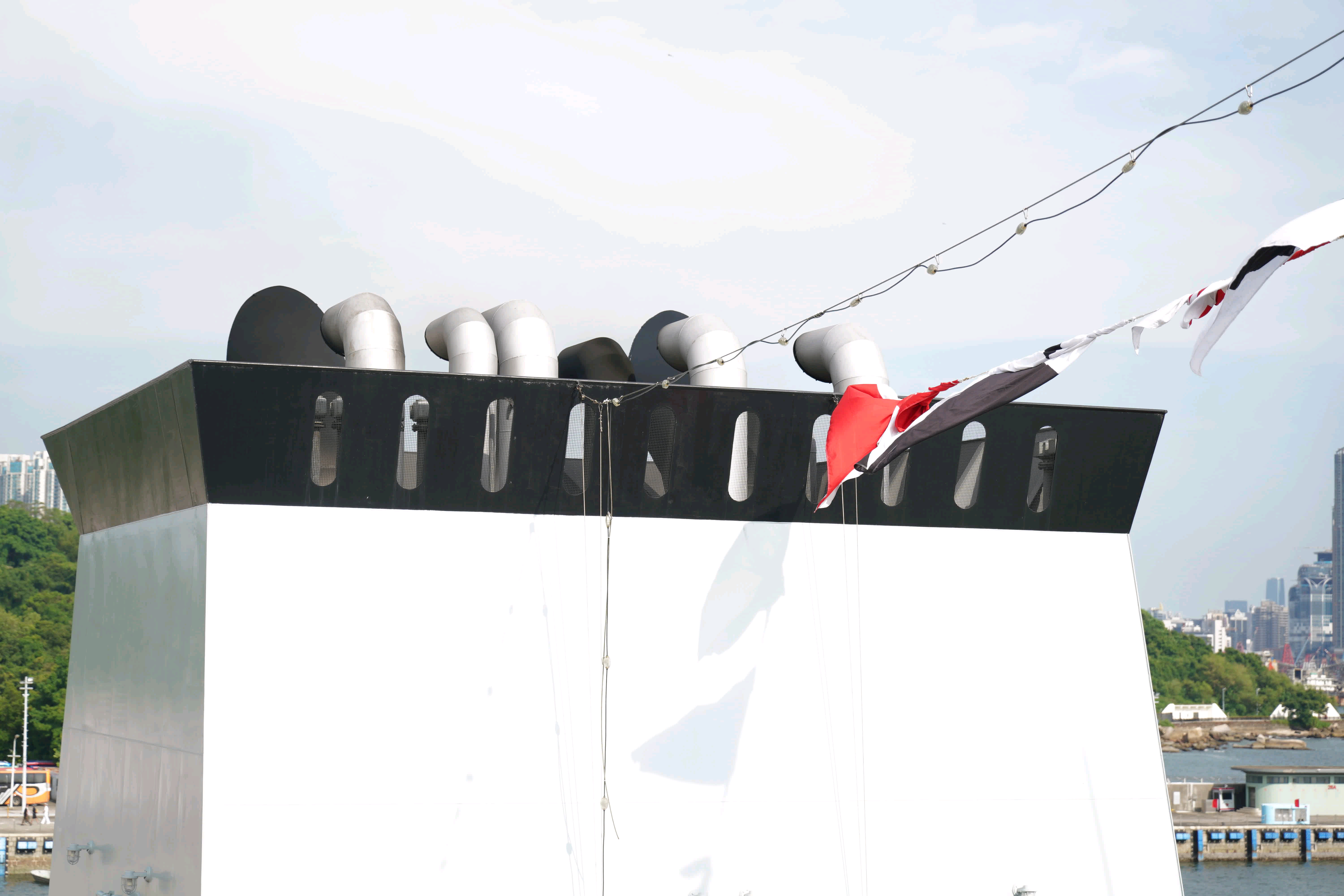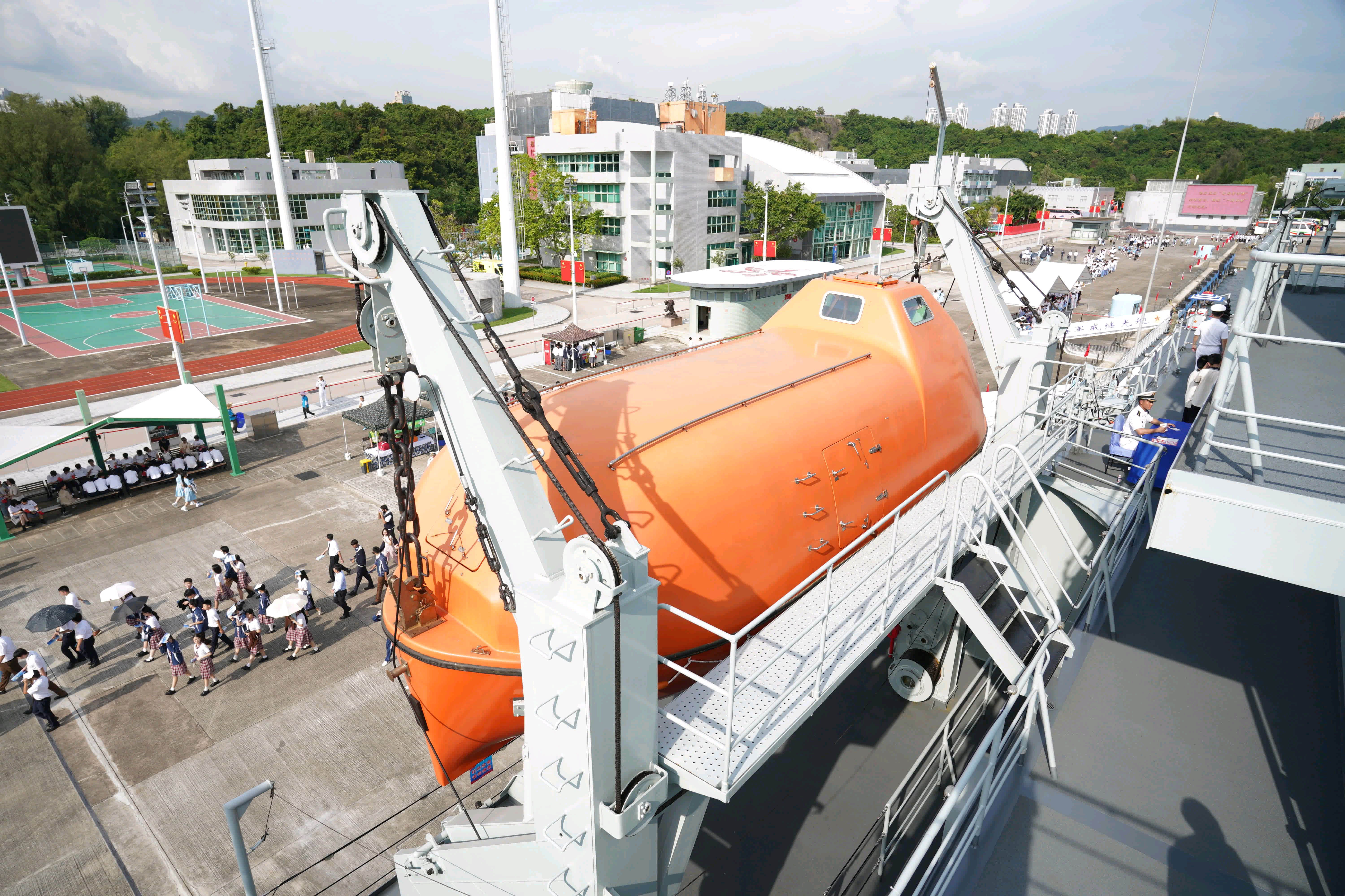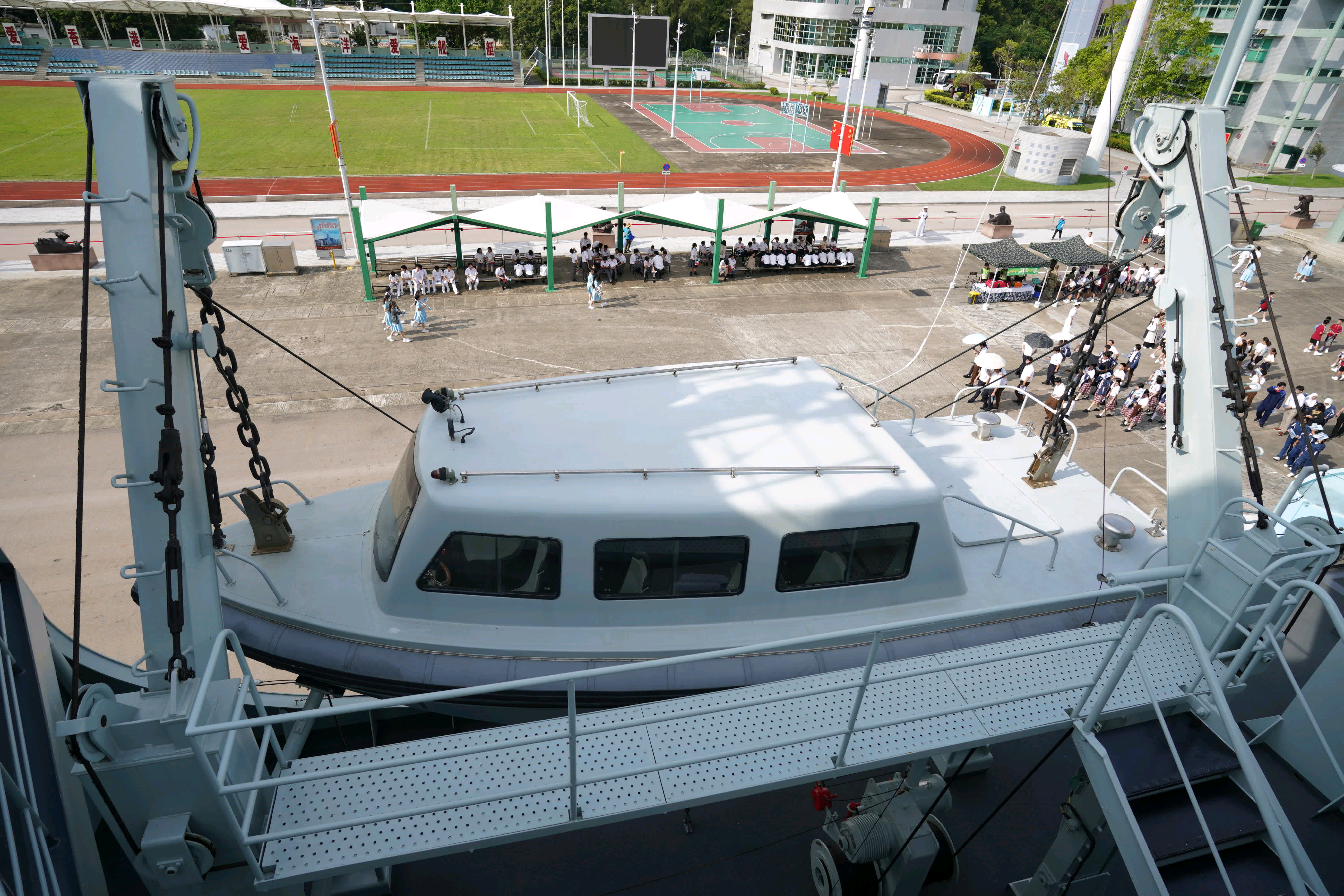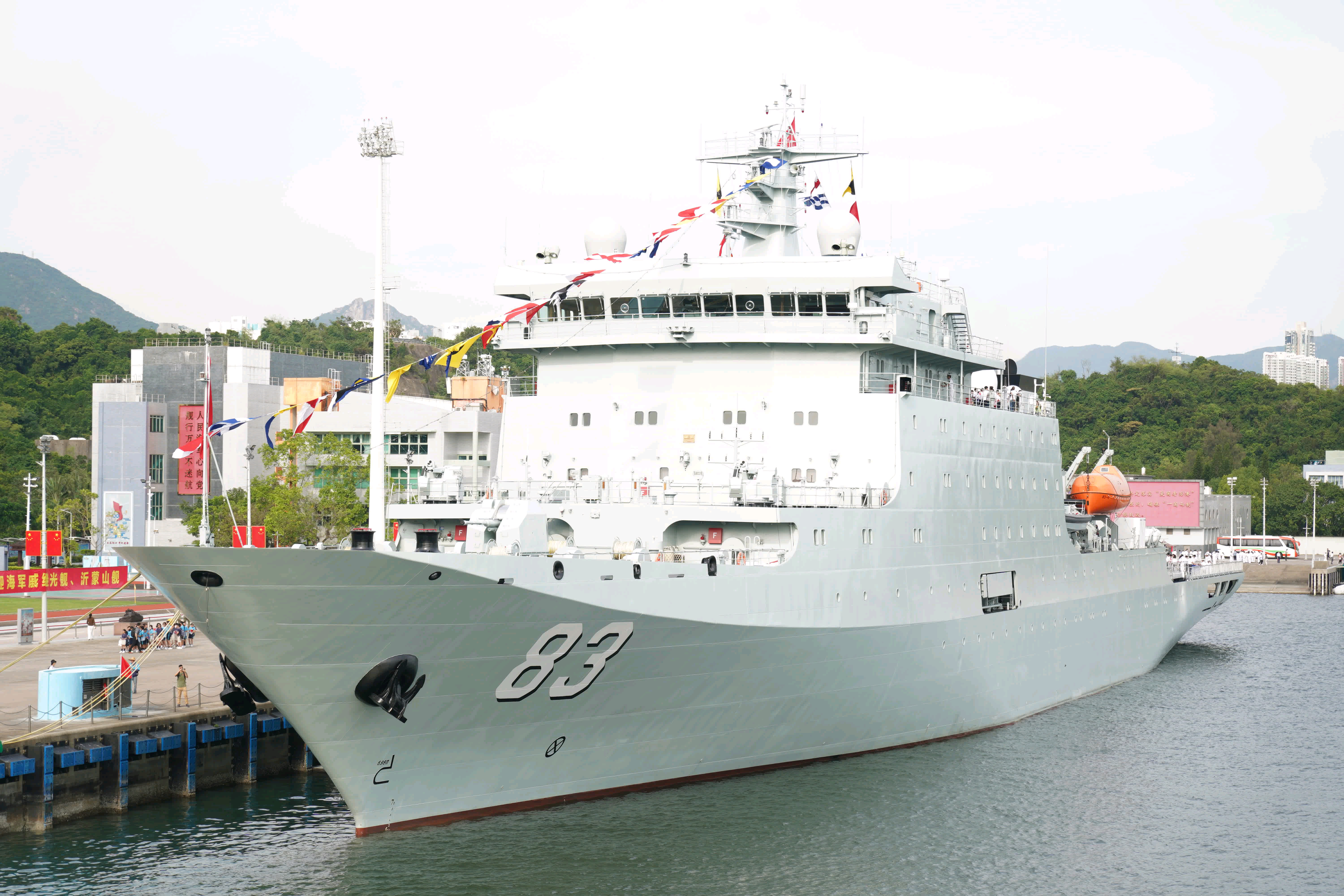 停在昂船洲码头的071沂蒙山舰舰载小艇收放舱特写某种大号HDMI接口(不是[do