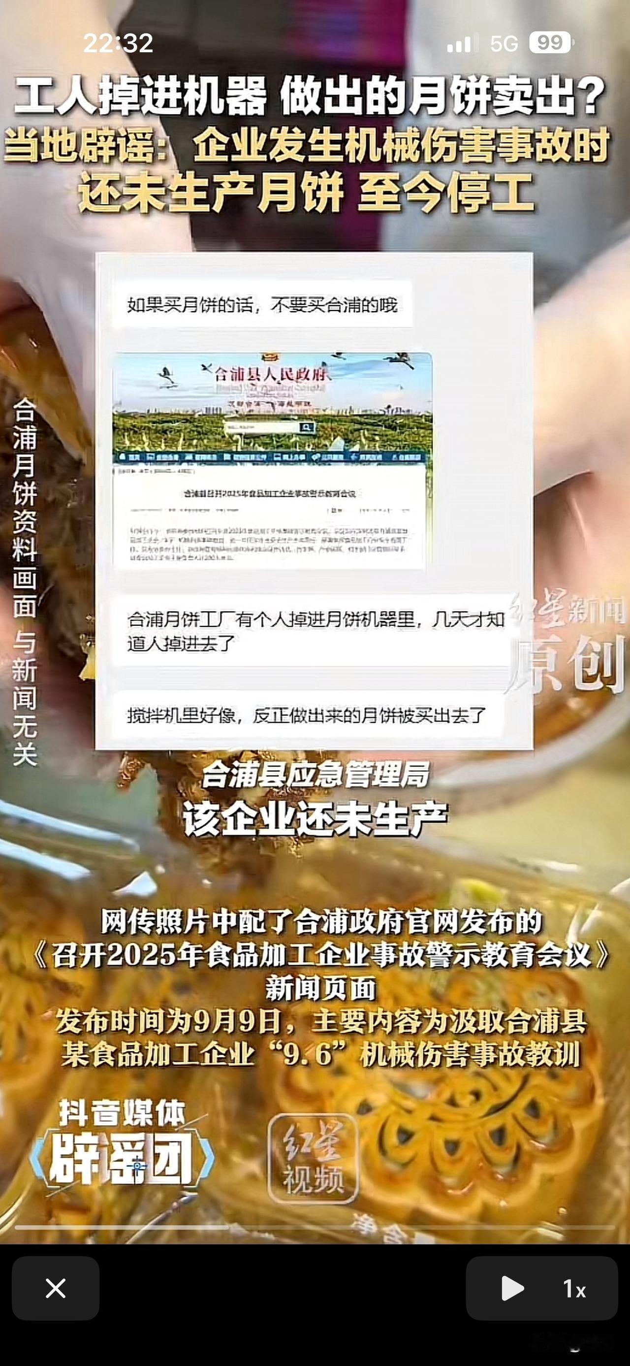广西辟谣:工人掉进机器做出的月饼🥮卖出? 企业发生机械伤害事故,时还未生产月