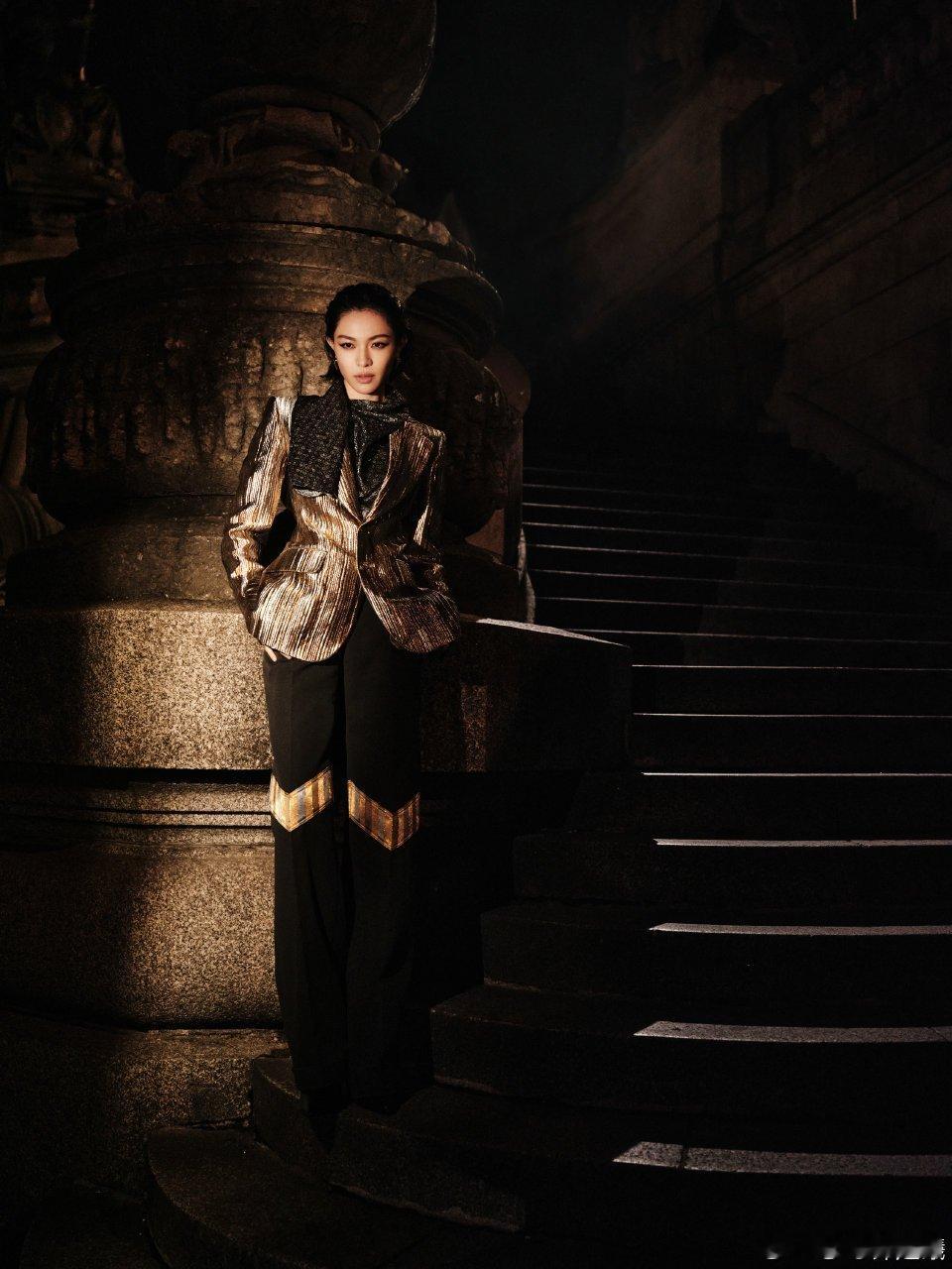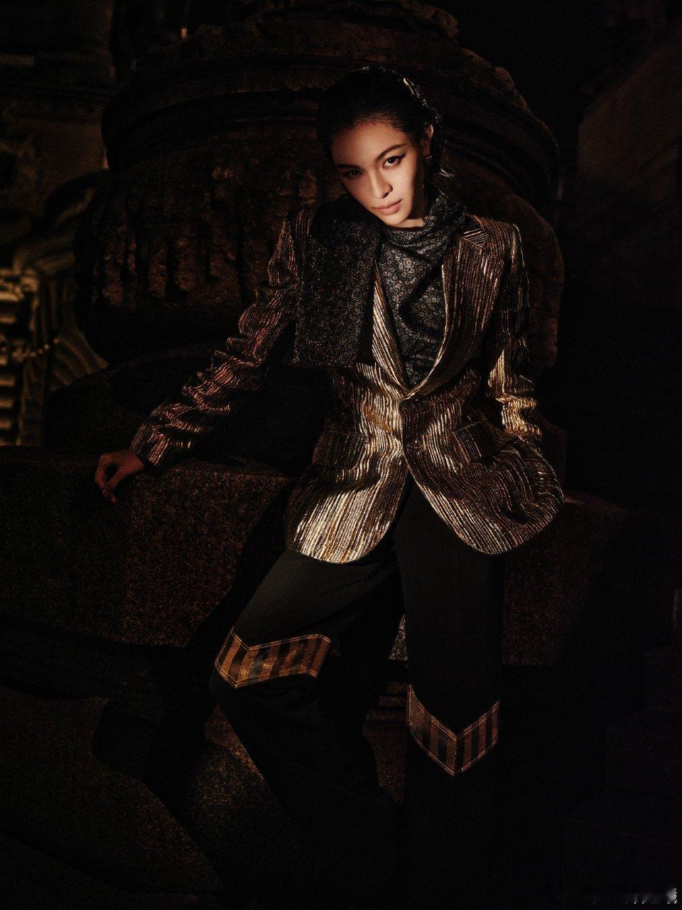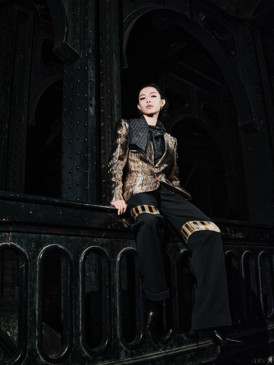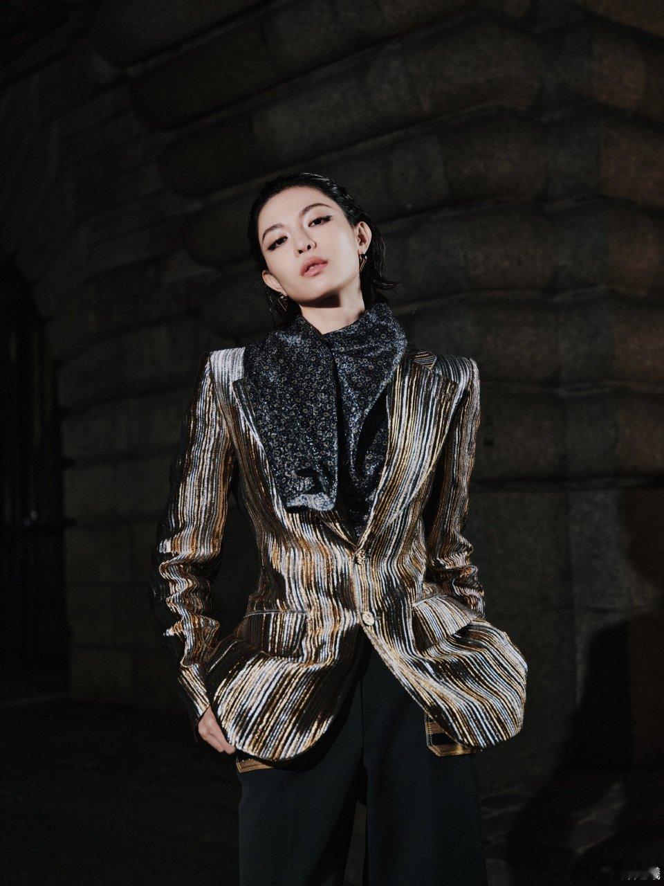 钟楚曦帅我一跳又一跳钟楚曦这身金属质感条纹西装也太绝了!黑金配色在灯光下闪闪发光