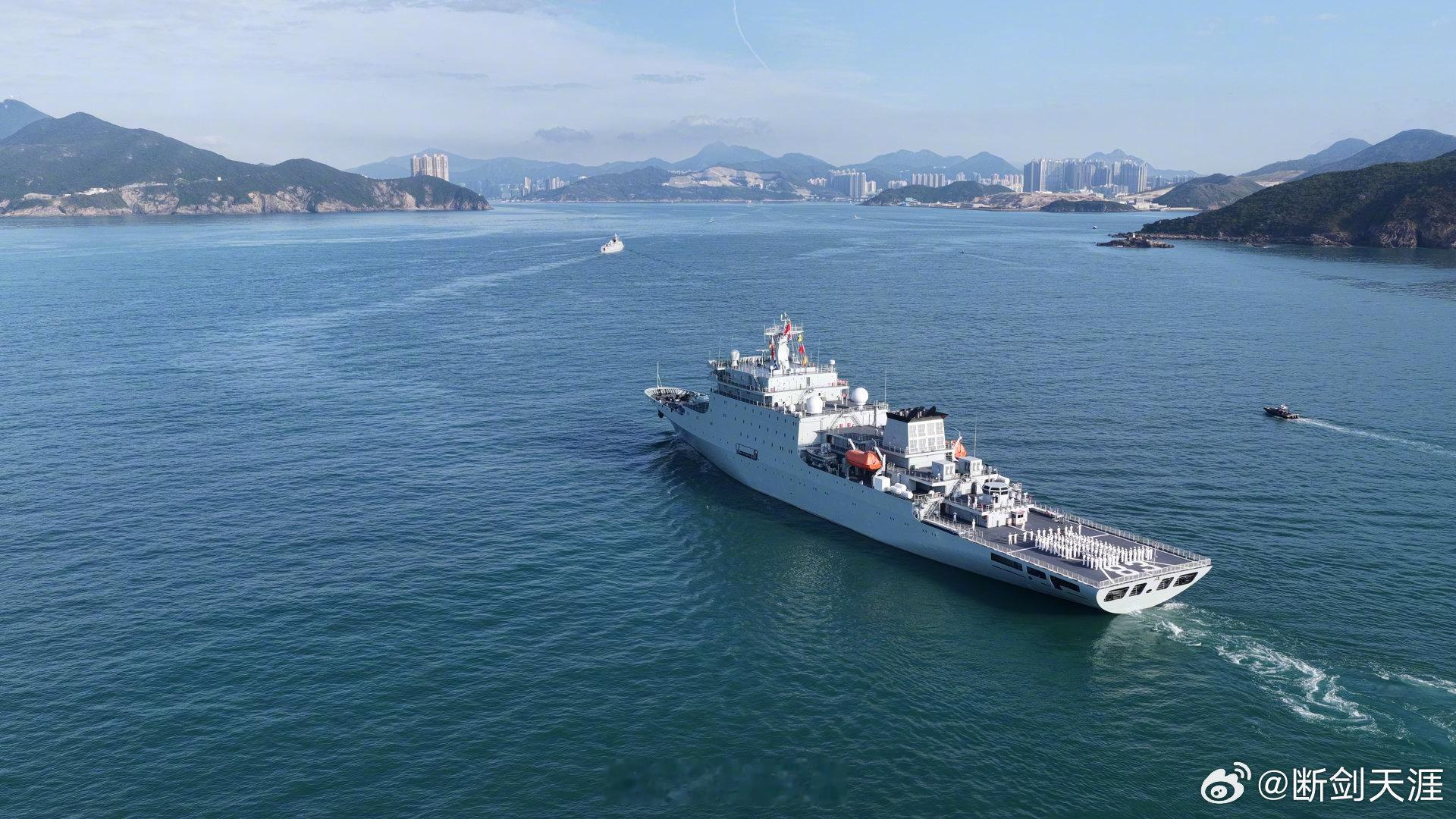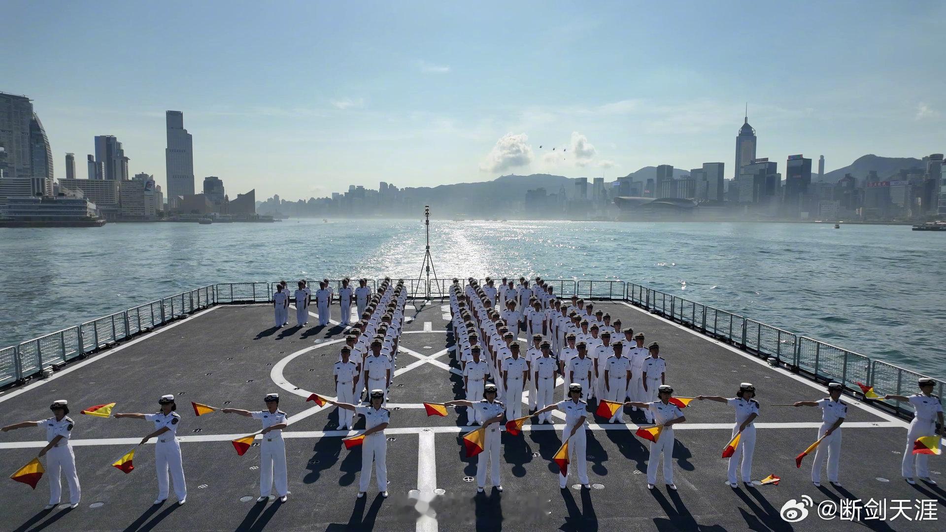 今天上午,正在执行远海综合实习访问任务的海军83舰编队,抵达香港特别行政区。驻香港部队代表在昂船洲军营码头为舰艇编队举行了欢迎仪式。