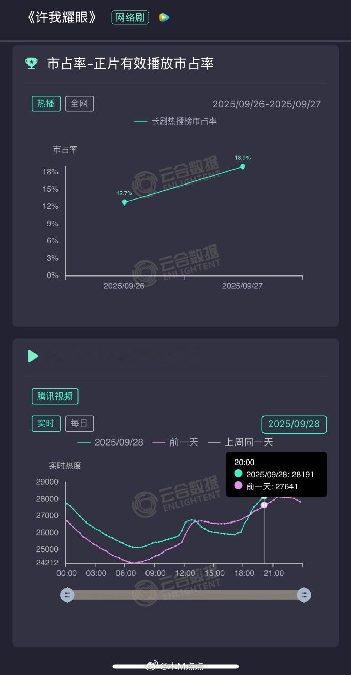 🐧都市剧破3w的确实屈指可数,因为这题材真的很难,近几年85🌸天仙一部《玫瑰的故事》90🌸杨紫有《承欢记》95花赵露思也拿下,所以《许我耀眼》破万的动力很大,不用随意云包场,要选个最合适的时机冲4w,这样就可以写进都市剧史册了