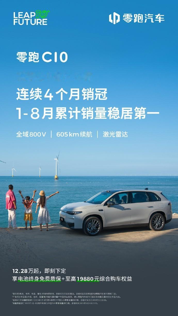 最新周销量出炉,零跑周销量超1.6万台,再稳新势力第一。 从2025年第39周销量来看,零跑汽车以1.6万台成绩,再稳新势力第一。从零跑上周新增订单1.1万台来看,其后劲也很足;而且,零跑的热销充分发体现了产品定义刀法精准,款款皆为爆款,旗下C系列、B系列车型全员都在热销。 尤其是零跑C10,该车用车仅17个月,全球累计交付就超16万台,并在今年1-8月累计销量统计中,稳居新势力中型SUV第一。值得关注的是,零跑C10海外销量也可圈可点,其中不乏有名人车主吉鲁。从此前公布的净推荐值(NPS)来看,26款C10&C16还包揽20万内新能源SUV榜前二。通过这一排名不难看出,26款C10的用户满意度与口碑甚是不错。 能被市场和一众车主认可,当然离不开零跑赋予C10越级的产品力。像很多朋友喜欢的辅助驾驶,26款C10以13万级价格,就给到你高通8650芯片+激光雷达端到端辅助驾驶,城区/高速均能实现领航辅助功能,泊车辅助也覆盖跨层记忆泊车功能,无论硬件还是功能,都有比肩20万级车型的越级实力。 对了,零跑还在前几天收获百万下线成就,成为唯二达成百万整车下线的中国新势力。加上零跑持续蝉联周销冠,在即将公布的9月销量中,零跑很可能再创新高。