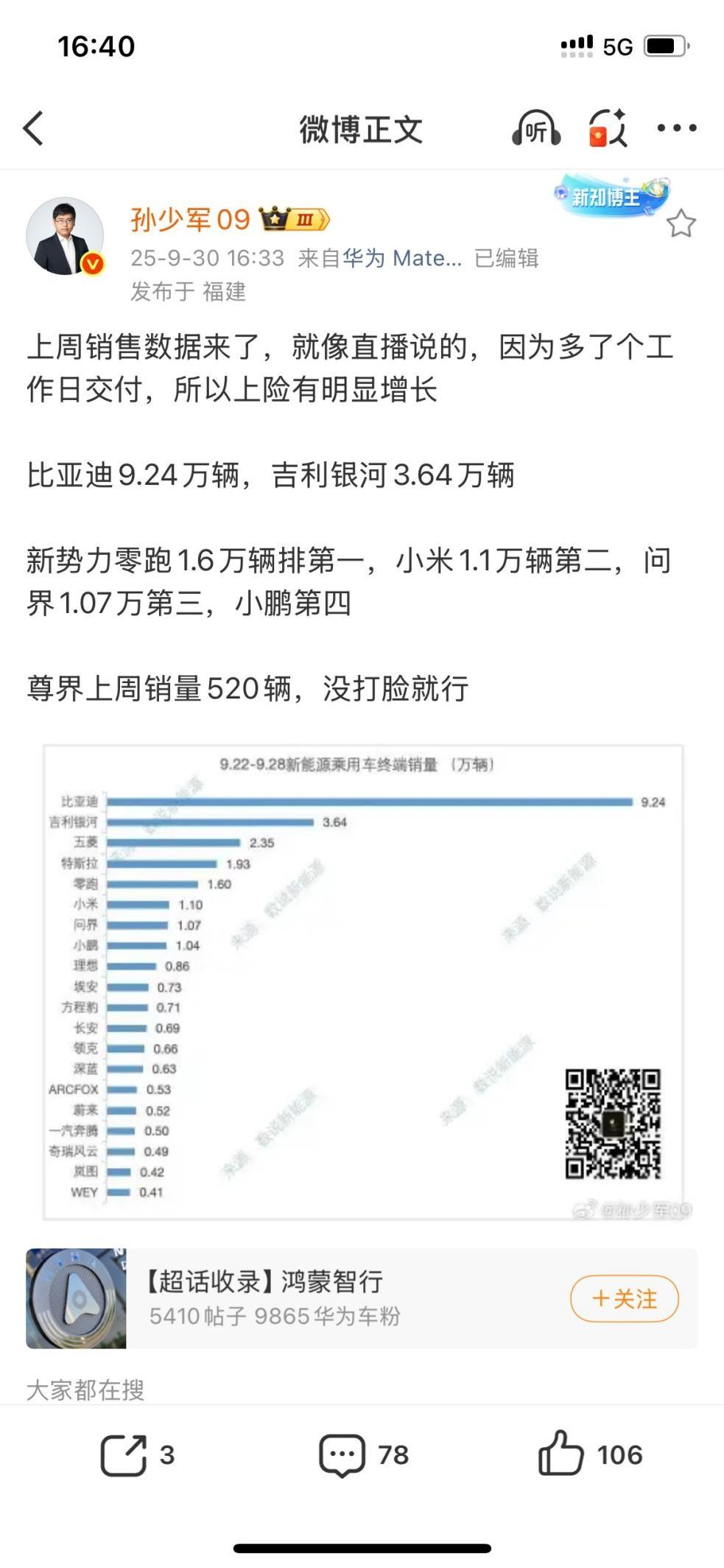 最新周销量出炉,零跑周销量超1.6万台,再稳新势力第一。 从2025年第39