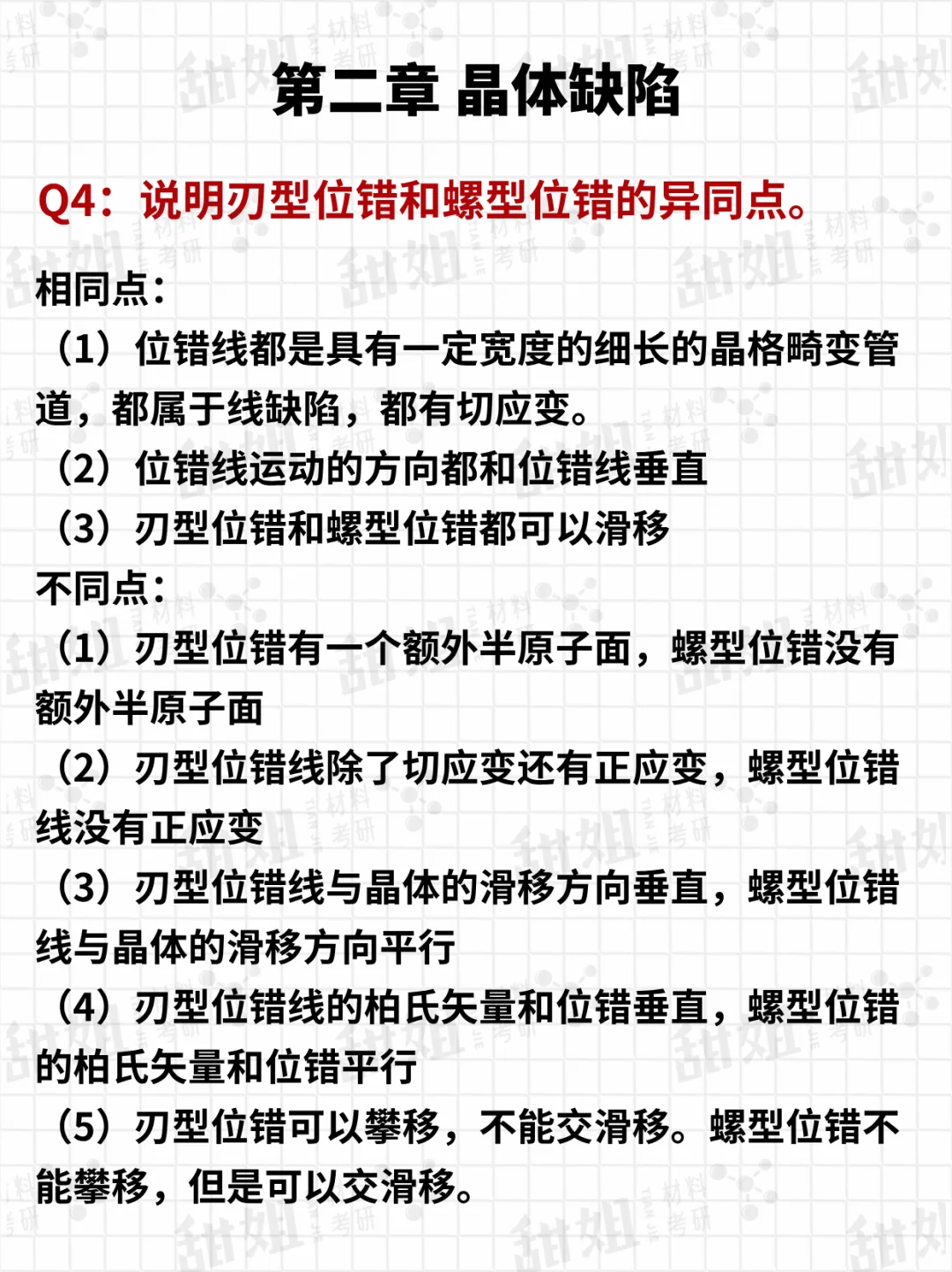 26考研 材料专业 材料考研 材料科学基础 干货 知识点 专业课 材料科学与工程 材料工程 材料与化工