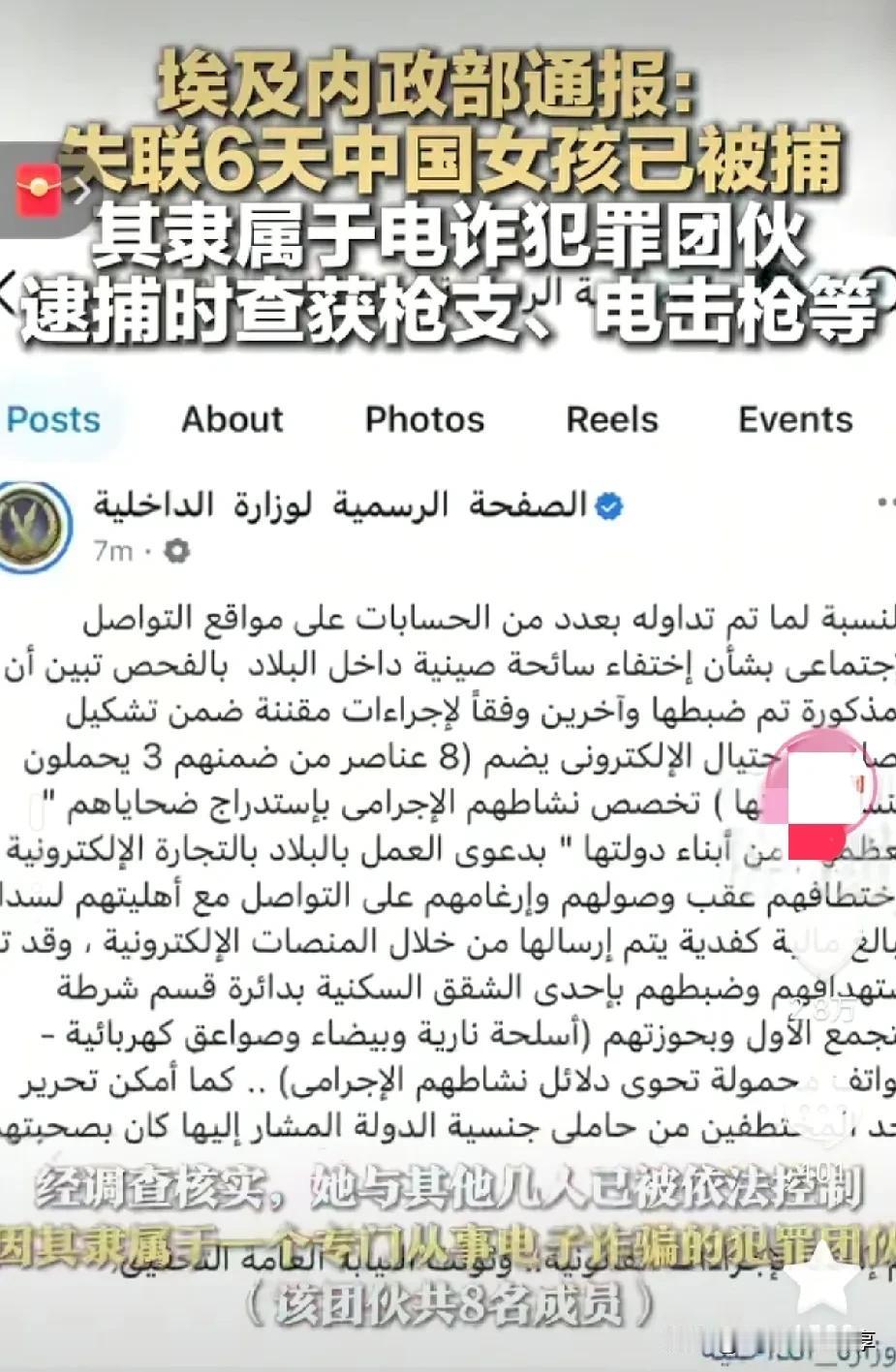 年度最佳“损友”出现了, 在埃及失联6天的女孩已找到, 被埃及内政部通报 涉电诈