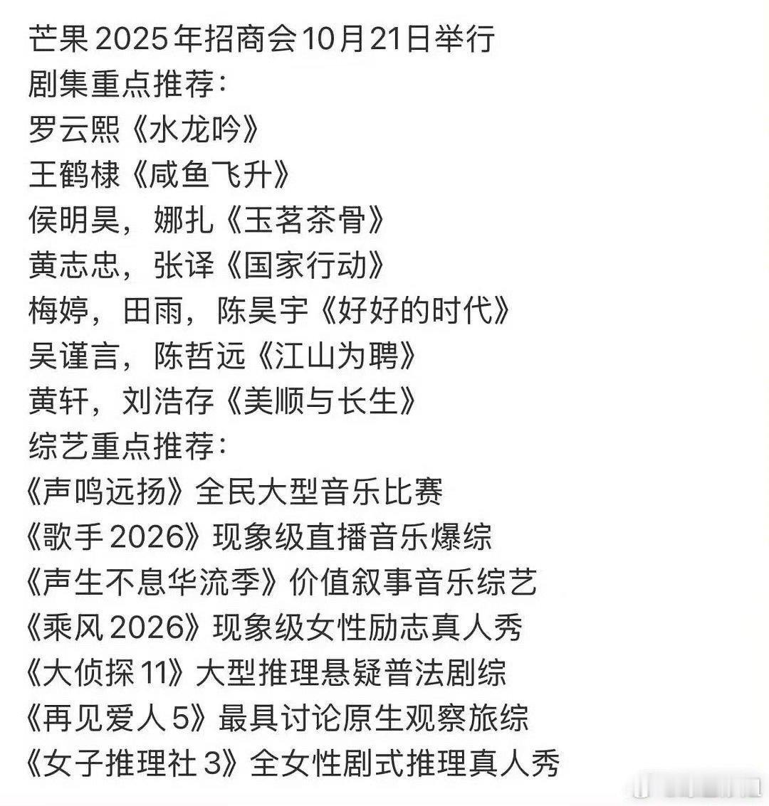 🥭2025招商会综艺推荐: