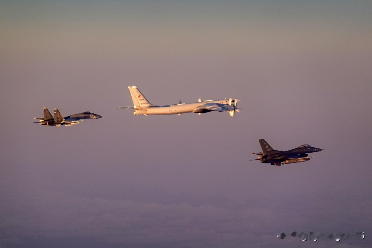📸🇺🇸🇷🇺美军公布拦截俄罗斯苏-35和图-95轰炸机的照片 北美防空司令部(NORAD)公布了拦截一架图-95轰炸机及其护航的苏-35战斗机的照片。该轰炸机进入了阿拉斯加防空识别区(ADIZ)。美国空军的F-16战斗机紧急升空拦截被NORAD发现的“战略轰炸机”。 一架E-3哨兵预警机、四架F-16战隼战斗机和四架KC-135同温层加油机参与了此次拦截。与往常一样,美军提供了拦截的照片报告。得益于日出时分美丽的天空,拦截效果相当不错。 阿拉斯加防空识别区的大小可以在最后一张图片中看到。