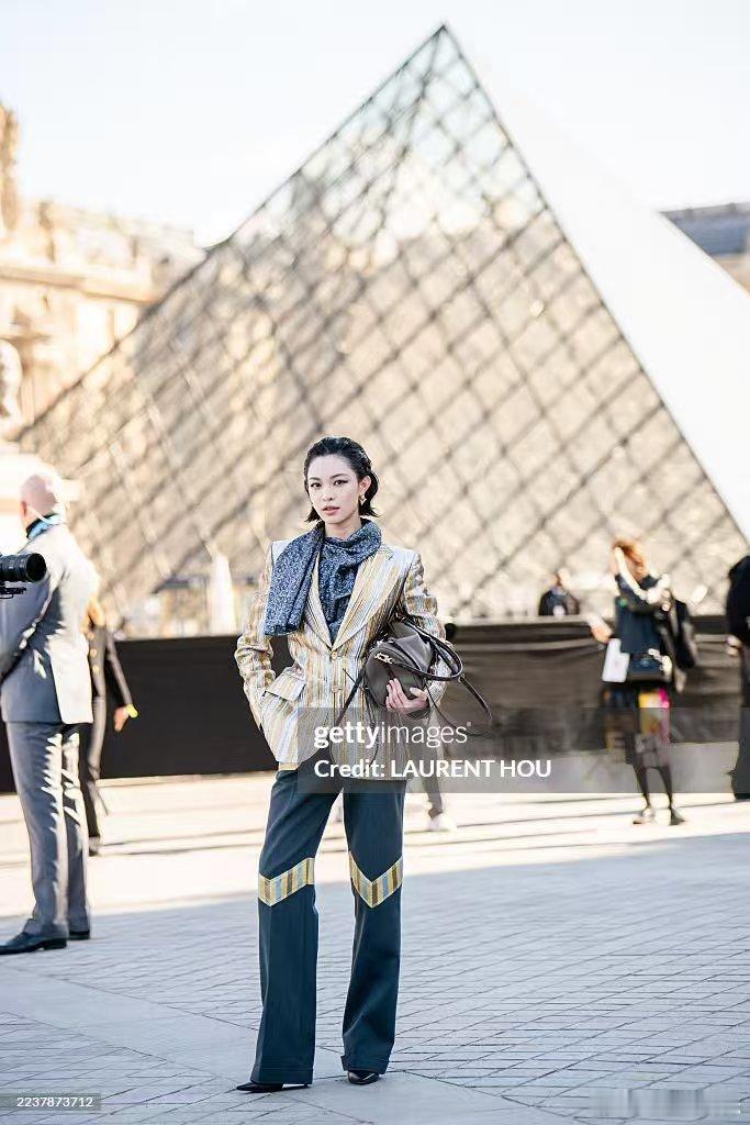 钟楚曦欧阳娜娜LV合照钟楚曦欧阳娜娜时装周合照钟楚曦与欧阳娜娜巴黎时装周合照。钟楚曦一身鎏金条纹西装气场全开,湿发背头尽显冷艳;欧阳娜娜则以金色针织上衣搭配格纹裙,甜酷兼备LV春夏26女装秀