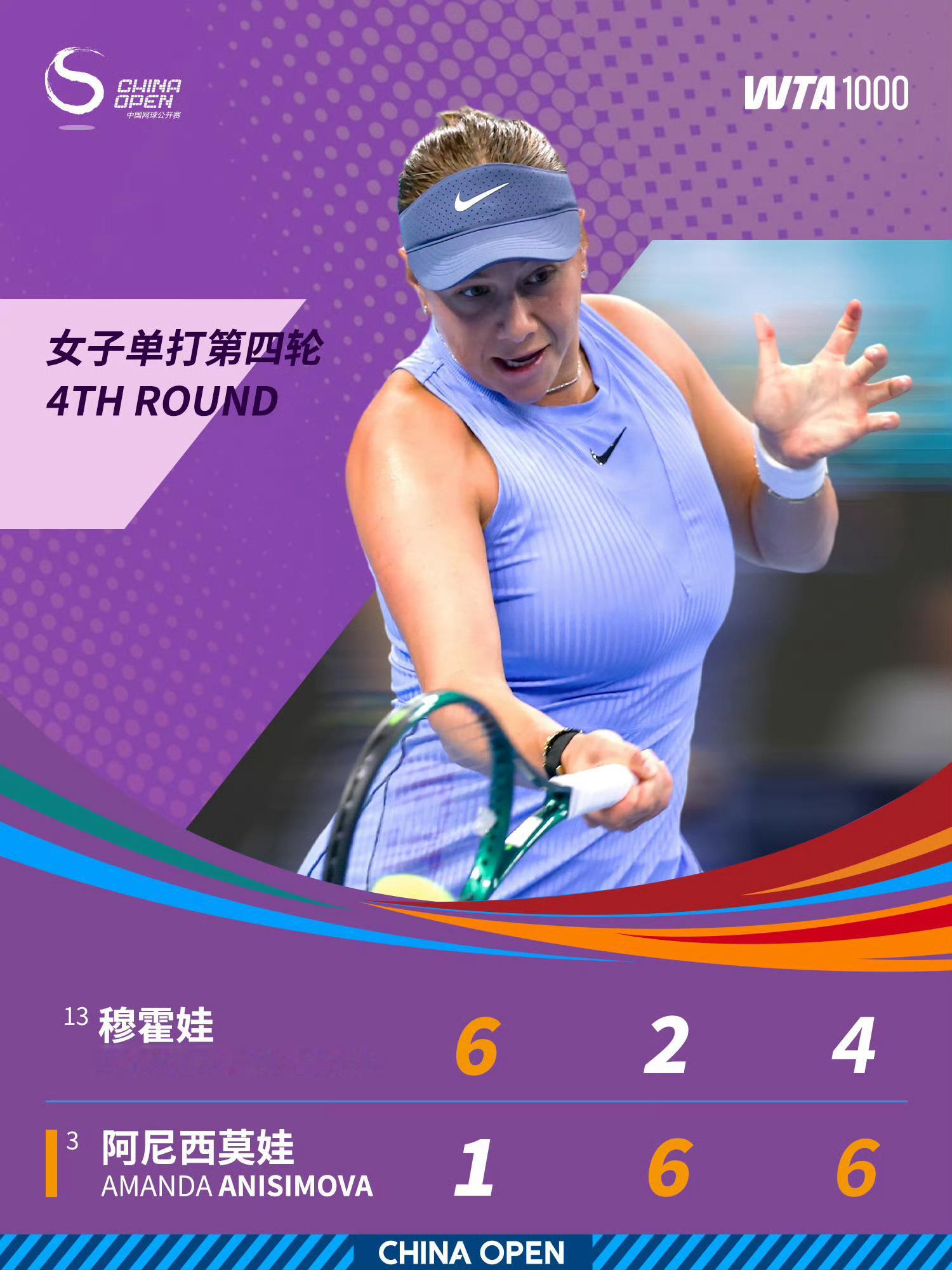 阿尼西莫娃晋级中网女单8强2025中网