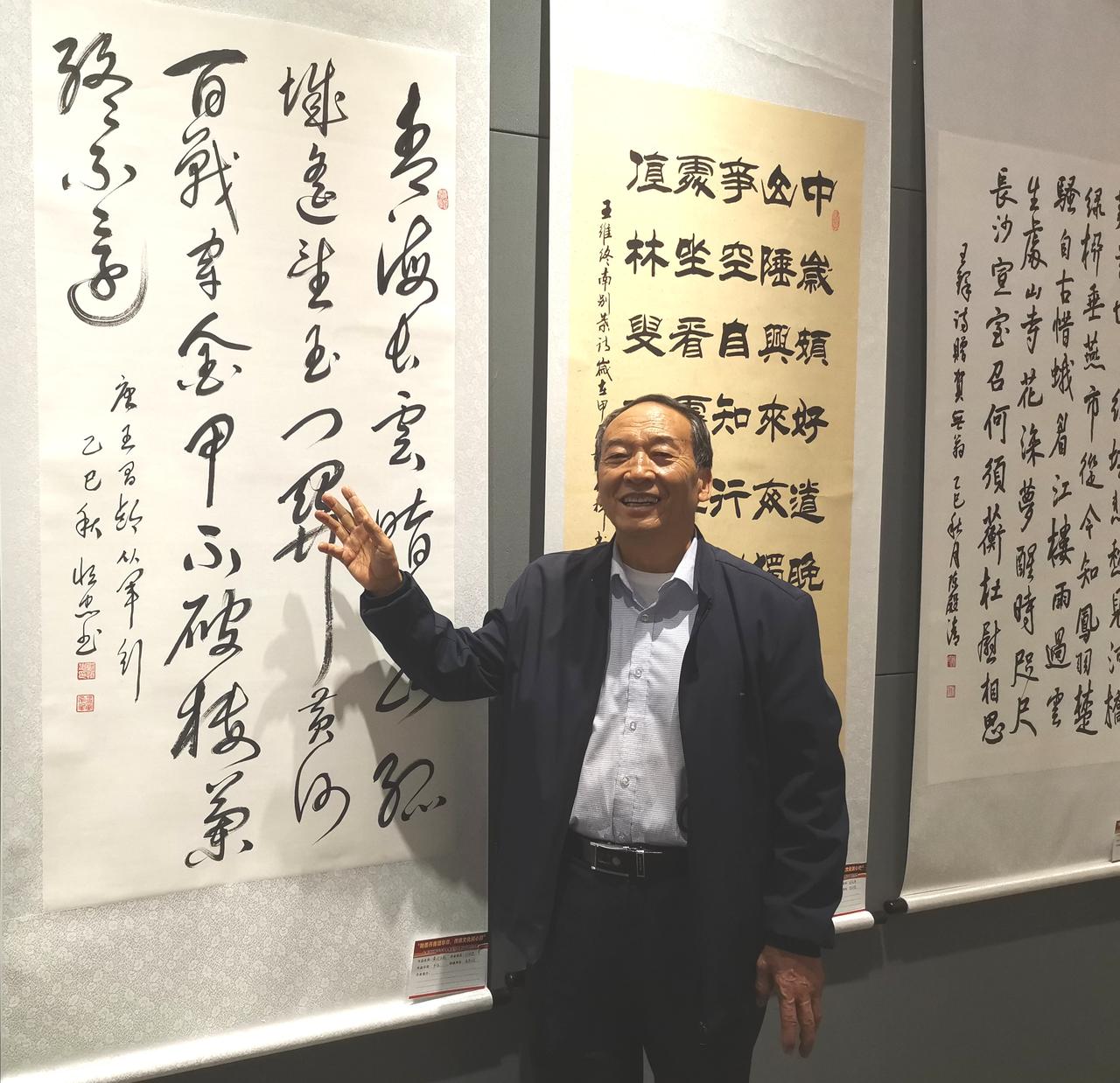 岳研会党支部书记刘恒忠 作品参加“两节”书画展 记者,王志俭文图 国庆、中秋两节将至,兰州市七里河区的有关部门,分别在文化宫、和小西湖公园举办了两场书画展。兰州岳研会党支部书记刘恒忠的作品,分别参加了两个书画展。 节前的兰州街头,到处悬挂着鲜艳的国旗,让城市弥漫着浓厚的节日氛围。记者先来到小西湖公园、采访由七里河区老年书画协会举办得:“庆国庆、迎中秋”会员书画作品交流展。 展厅内书画作品共计142幅, ,其中书法作品82幅,花鸟国画作品60幅、书法作品洒脱自如,画作清雅脱俗。记者采访时巧遇熟人刘恒忠,他是兰州岳研会党支部书记,也是退役军人书法家。其作品多次在全国书法大赛上荣获殊荣。这个书画展上他有一幅草书作品,是唐朝诗人张继的枫桥夜泊; 月落乌啼霜满天,江枫渔火对愁眠。姑苏城外寒山寺,夜半钟声到客船。现场一位书法家说,这幅作品线条流畅,气势磅礴,让人感受到一种独特的韵律和节奏。他还说,刘恒忠的另一幅作品同时也在文化宫展出。 之后刘恒忠和记者前往文化宫,展览厅前矗立着一个广告宣传版,上面写着主办单位:中共兰州市七里河区委宣传部、中共兰州市七里河区委统战部。承办单位是七里河区民宗局、七里河区文化馆和七里河区文联。这个画展上刘恒忠的书法作品是草书王昌龄的从軍行:青海长云暗雪山,孤城遥望玉门关。黄沙百戦穿金甲,不破楼兰终不还。这幅书法作品是献给为中国人民解放事业献出生命的烈土,寓意他们的精神永垂不朽。一位行家评价:这幅作品展示的是龙飞凤舞与行云流水的韵味。 随后,刘恒忠与记者一起观看书画展,他一边指着书画作品,一边向记者介绍书画作品的特点,让记者受益匪浅。
