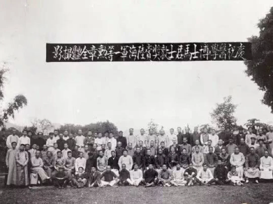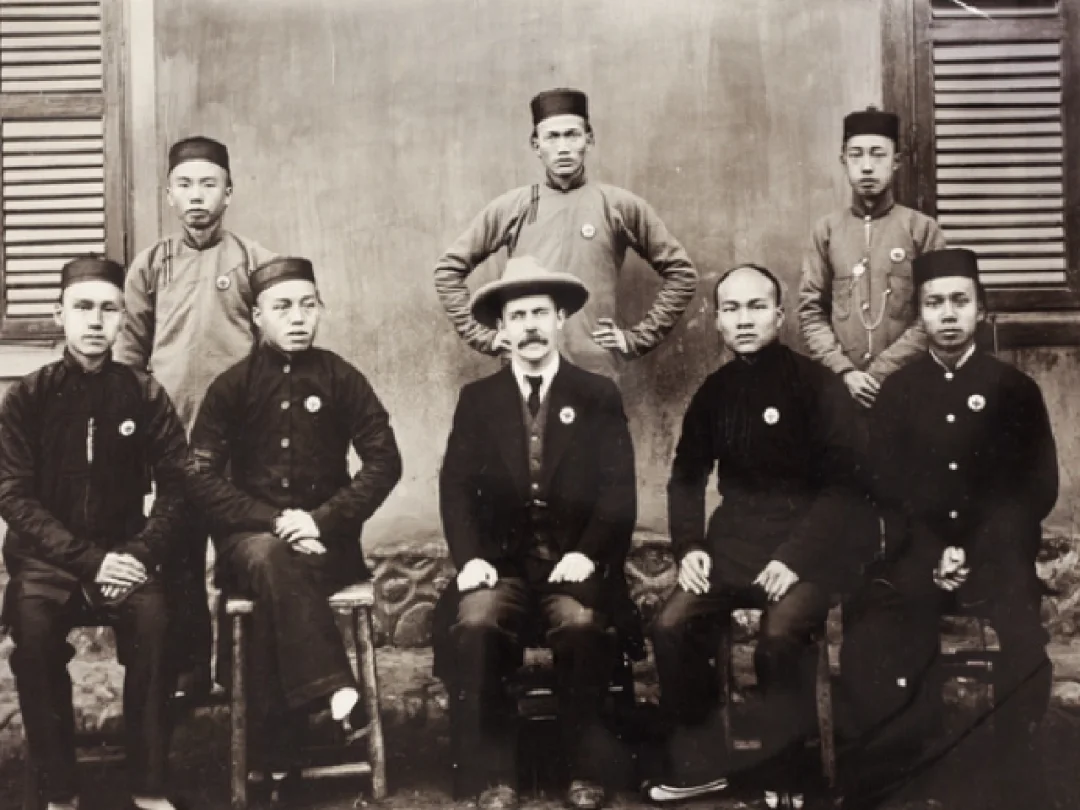 这是典礼上的合影,英长老会传教士马士敦医生及同事与当地官员的合影。