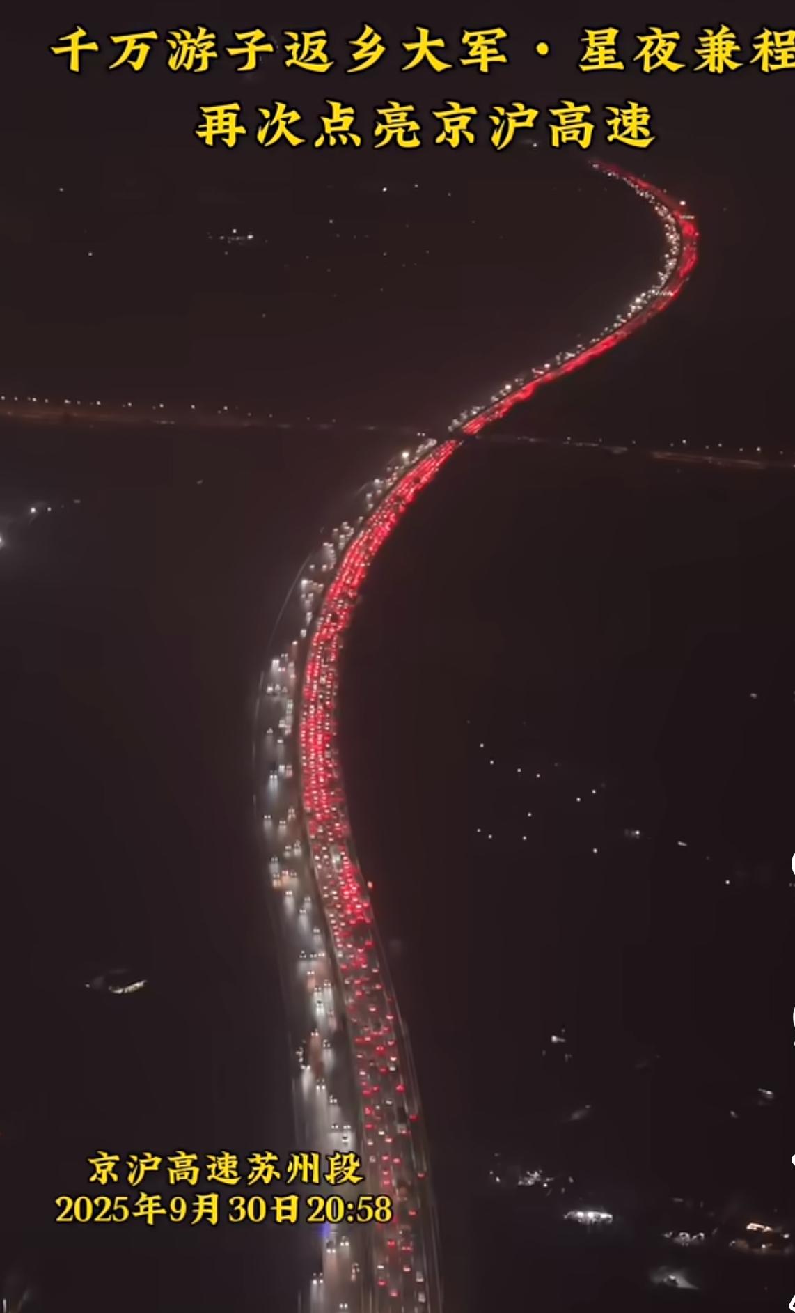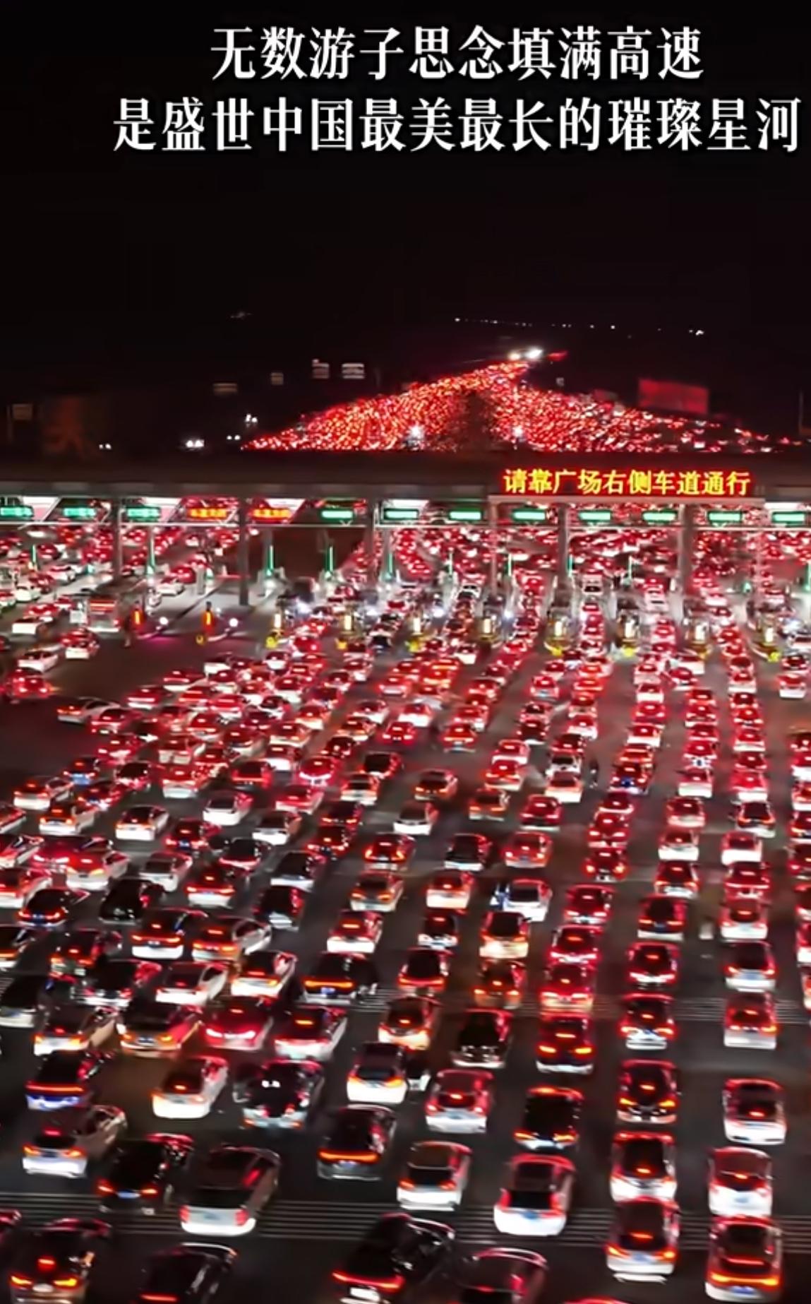 车灯照亮回家的路,已经开启拥挤模式了。 刷到好多这样的照片。 每一辆车上都是一颗颗跳动的心,因为开启了一场快乐的旅程。