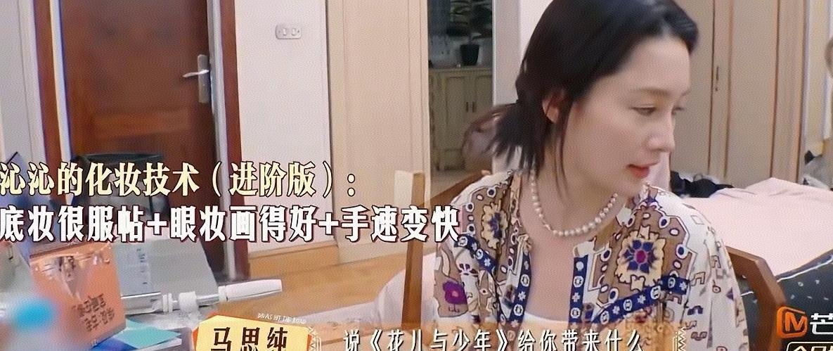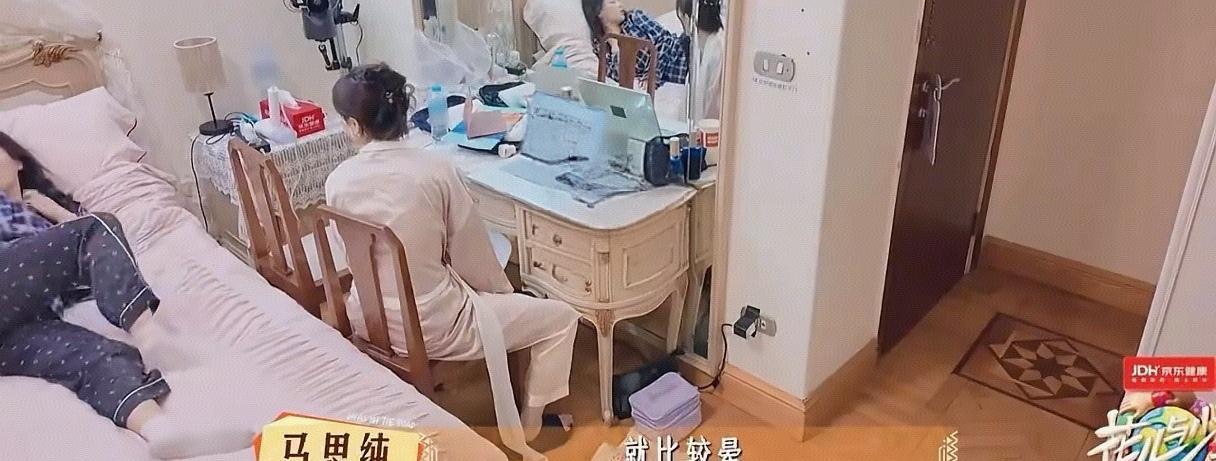 马思纯一进去李沁房间, 一边喊着晕, 一边直接往床上躺。 真的一点都不把自己当外人呀, 一进去李沁的房间就躺, 也不用打招呼呀。 哎呀, 她们就是关系太好了, 怎么舒服怎么来, 就当作自己的房间一样。 就这样, 马思纯躺在李沁的床上, 看着李沁对着镜子化妆。 吐槽李沁在录花少节目 最大的收获就是 化妆技术进步了。 特别是假睫毛贴得越来越好。 你看, 那英就因为太累了, 不怎么化妆, 被化妆师吐槽像70岁老太太。 在旅程那么累的情况下, 李沁还坚持化妆, 真的太注重个人形象了, 原来李沁是化妆“小白”, 为了参加这个节目还特意 去学习了一些化妆技巧, 随着节目行程的推移, 她的化妆技术是 肉眼可见的进步呀。 李沁虽然是讲究精致的, 但是比起陈数来,