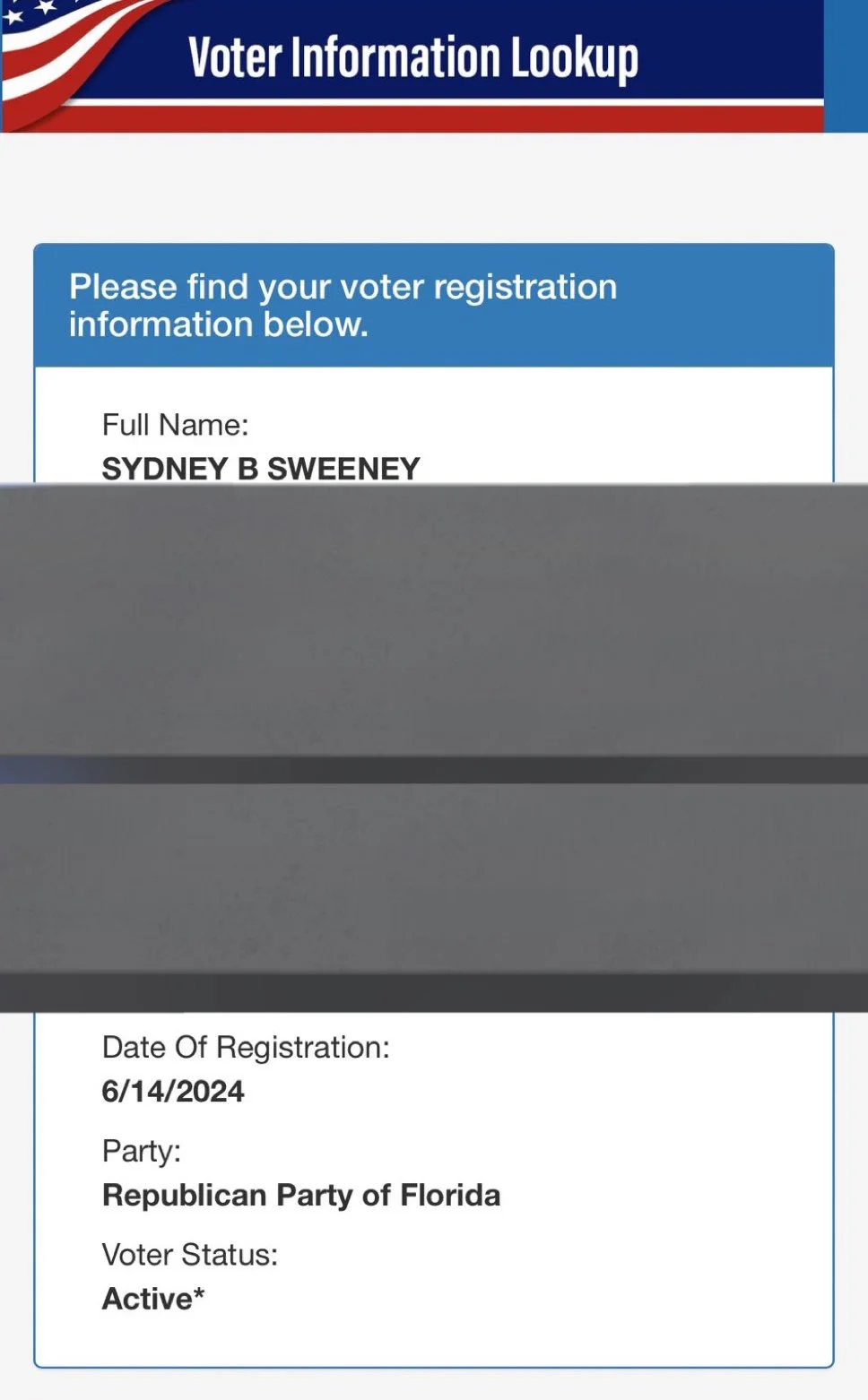 悉尼妹 Sydney Sweeney 被网友扒出自2024年起就在佛罗里达州登记为共和党人