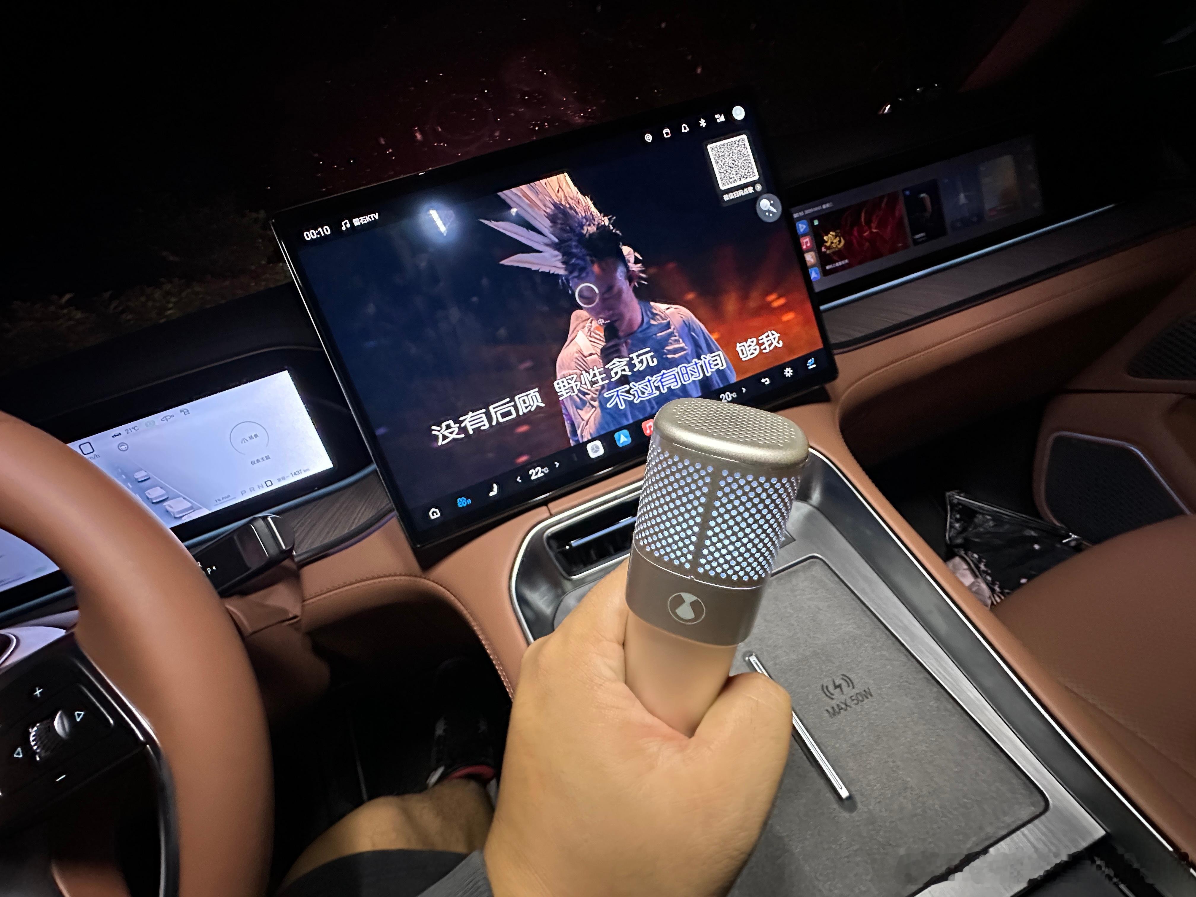 堵得前后都不动了,这一刻车上K歌功能就很解忧了~腾势N9的帝瓦雷音响还是很顶的,