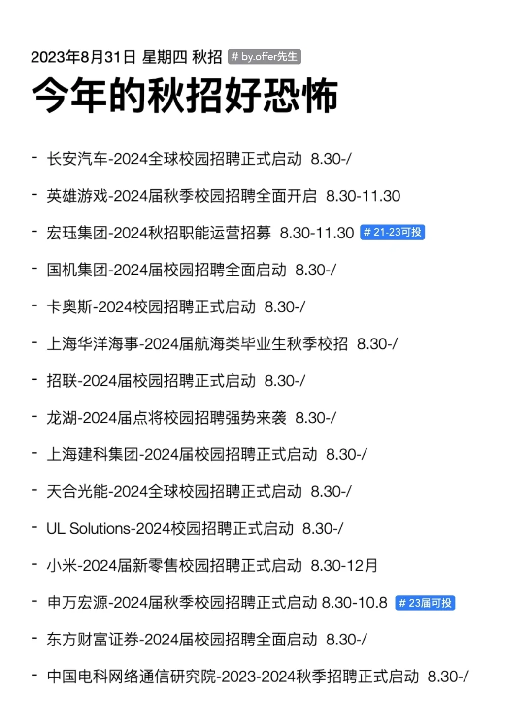 图上都是8月最后这3天新开启的秋招,码住挨着投