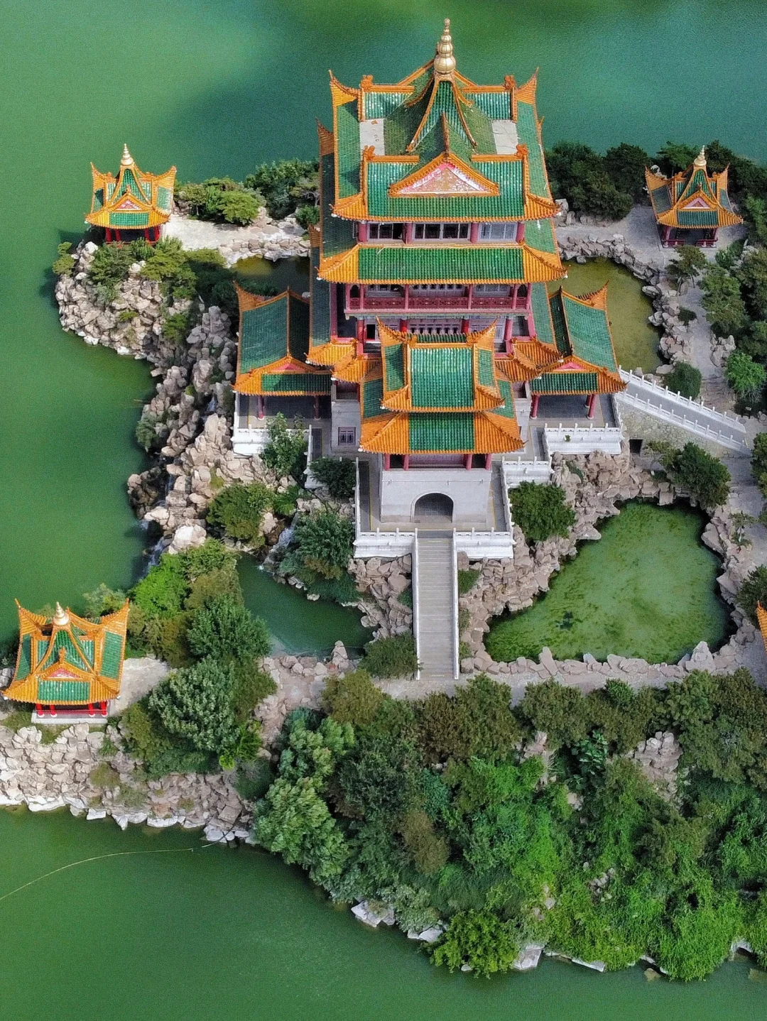 就像横卧在海上的宝葫芦,美轮美奂,惟妙惟肖,景点错落有致,分布其间