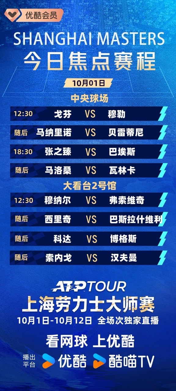 上海大师赛今天正赛开赛!将独家转播,今晚6:30起,我将解说夜场的中央球场大戏:张之臻vs巴埃斯;马洛桑vs瓦林卡。ZZZ复出后家乡首秀+瓦林卡40岁重回上海滩,十一黄金周,网球陪大家过双节。