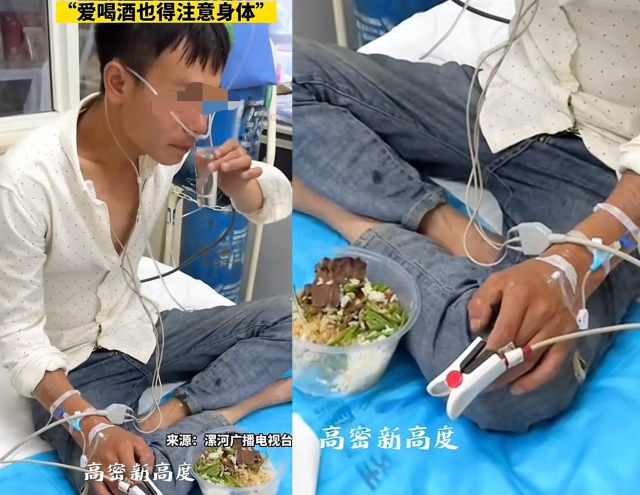 太心痛了!男子患肝癌,不听家人劝, 天天偷着喝酒,10分钟就灌下一斤白酒 吐