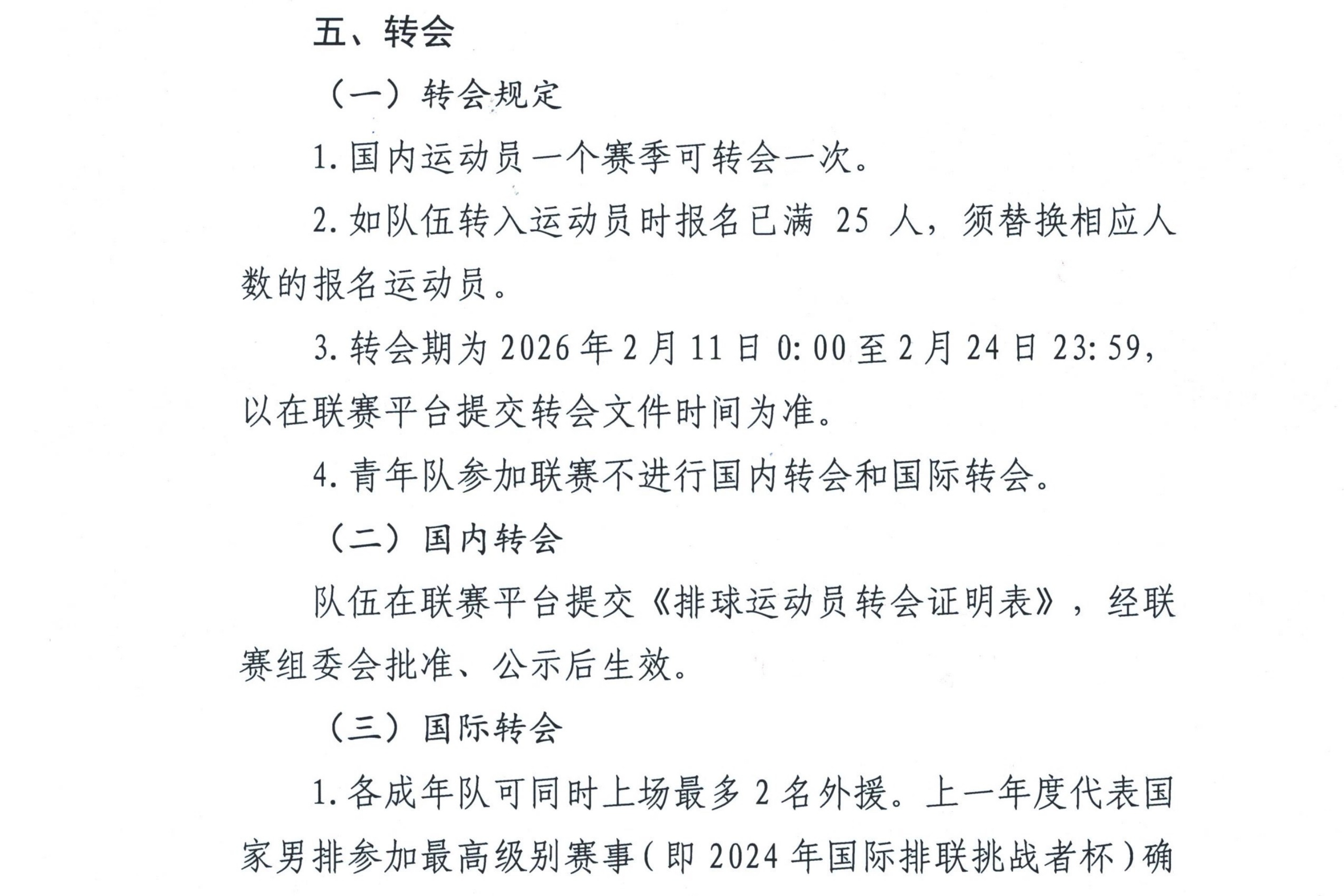 2️⃣赛季中:冬季转会时间,2026年2月11日~2月24日,内援也可以在这个时期转会