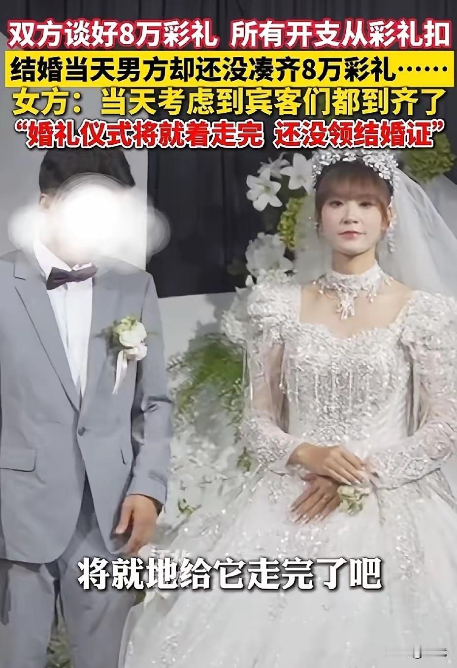 重庆一位二婚女子带着孩子,与新郎商定:八万彩礼,酒席钱从中扣除,剩余返还。婚礼当天,陕西的娘家人包车赶来,新娘身着喜服,却等来新郎的电话:“只凑到两万。” 新娘愣住了,她想要的不过是一份体面,让老家亲戚看看,自己再婚仍被重视。可两万块,连酒席钱都不够。姐姐掏出六万救场,婚礼在尴尬中草草结束。没领证,婚宴后,新娘提出分手。新郎道歉,但她的心意已决:连八万都借不到的男人,如何托付余生? 这场闹剧,暴露了婚姻中的两个荒诞:一是彩礼成了面子的筹码,二是感情在金钱面前不堪一击。 新郎若早知凑不齐八万,为何不坦白?若真心相爱,新娘或许会妥协。可新娘的坚持,不过是想证明自己“值得被爱”。然而,八万彩礼摆上桌,最终却要姐姐垫付,这面子,究竟给谁看? 婚礼的本质,是向世界宣告:我找到了共度一生的人。亲友的祝福,爱人的真心,才是真正的“彩礼”。若为了一叠钞票,让婚姻沦为表演,那这场戏,注定没有赢家。