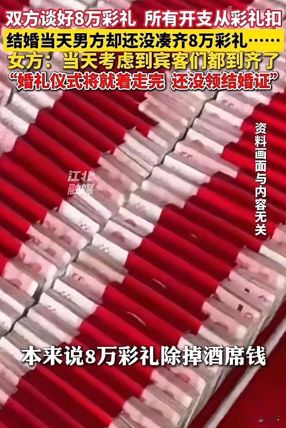 看明白了吗? 彩礼八万 所有开支都从里面出 剩下的返还 按你当地的嫁娶平均水平 得花多少 能剩下多少?