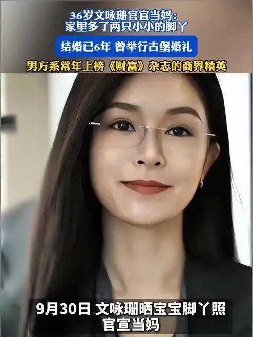 2025年9月30日,演员文咏珊晒出婴儿脚丫照官宣生子,配文“我们的家多了两只小小的脚丫”。她与丈夫吴启楠自2014年相恋,2019年意大利古堡完婚,六年爱情终迎新生命。网友纷纷祝福:“从《消失的她》到现实赢家,这才是低调的幸福范本!”文咏珊广告代言 文咏 梁咏珊 向文咏珊