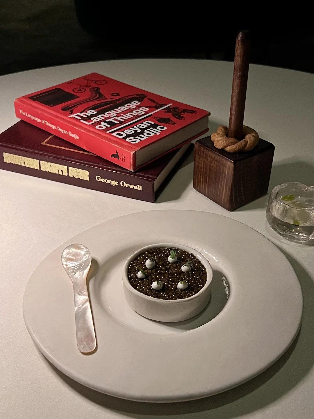 意大利红虾搭配表面的鱼子酱,一口下次口感丰富又轻盈,很鲜甜!