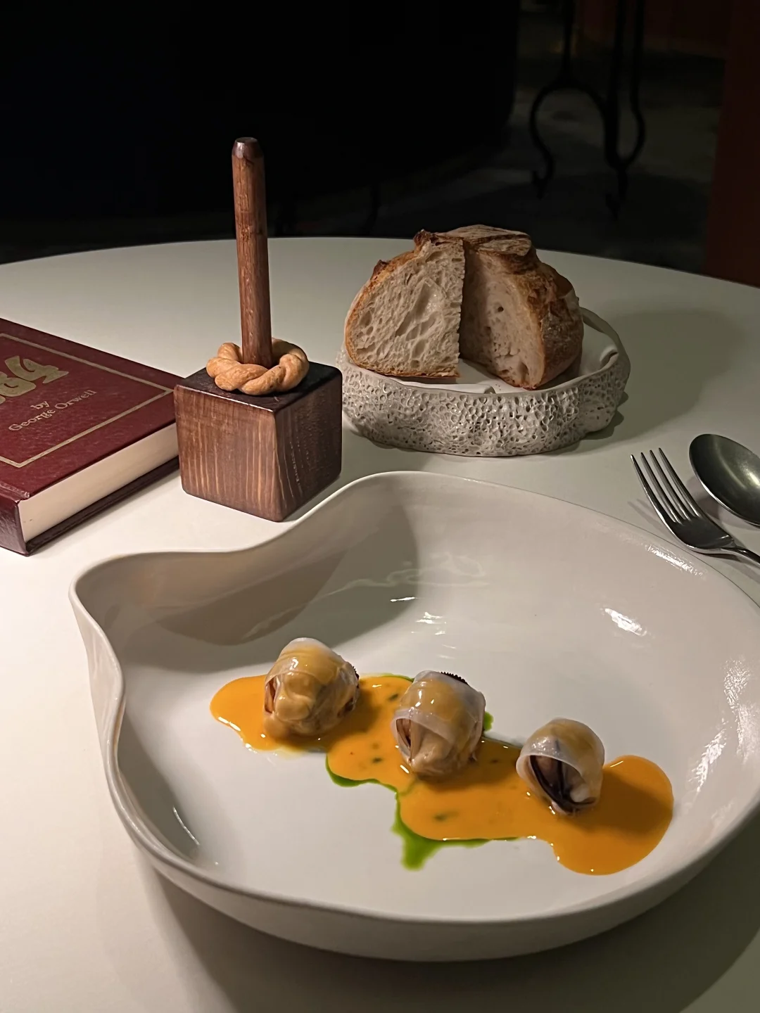 青口搭配八爪鱼、鱿鱼,酱汁是酸甜感的番茄,点睛之笔