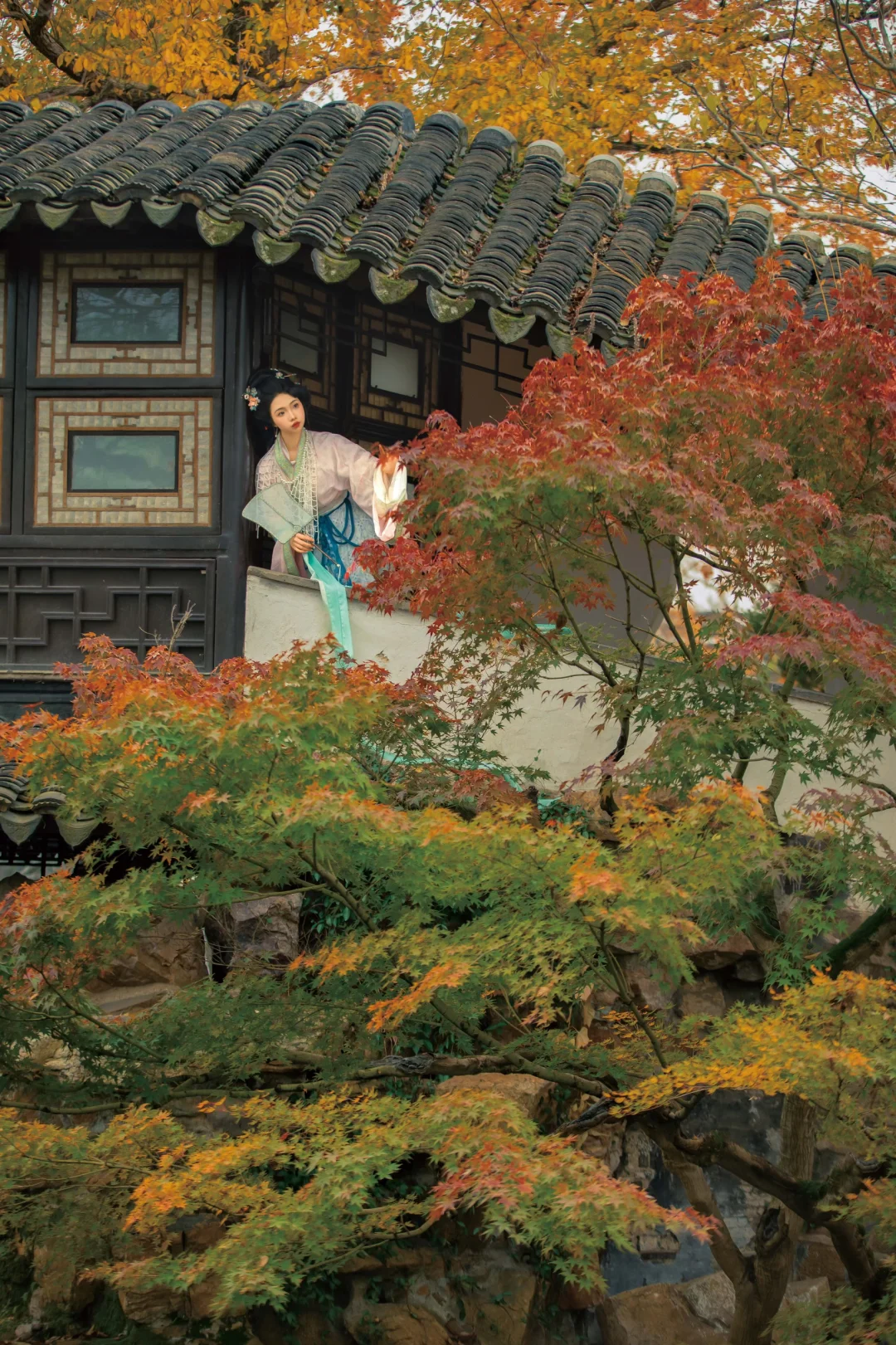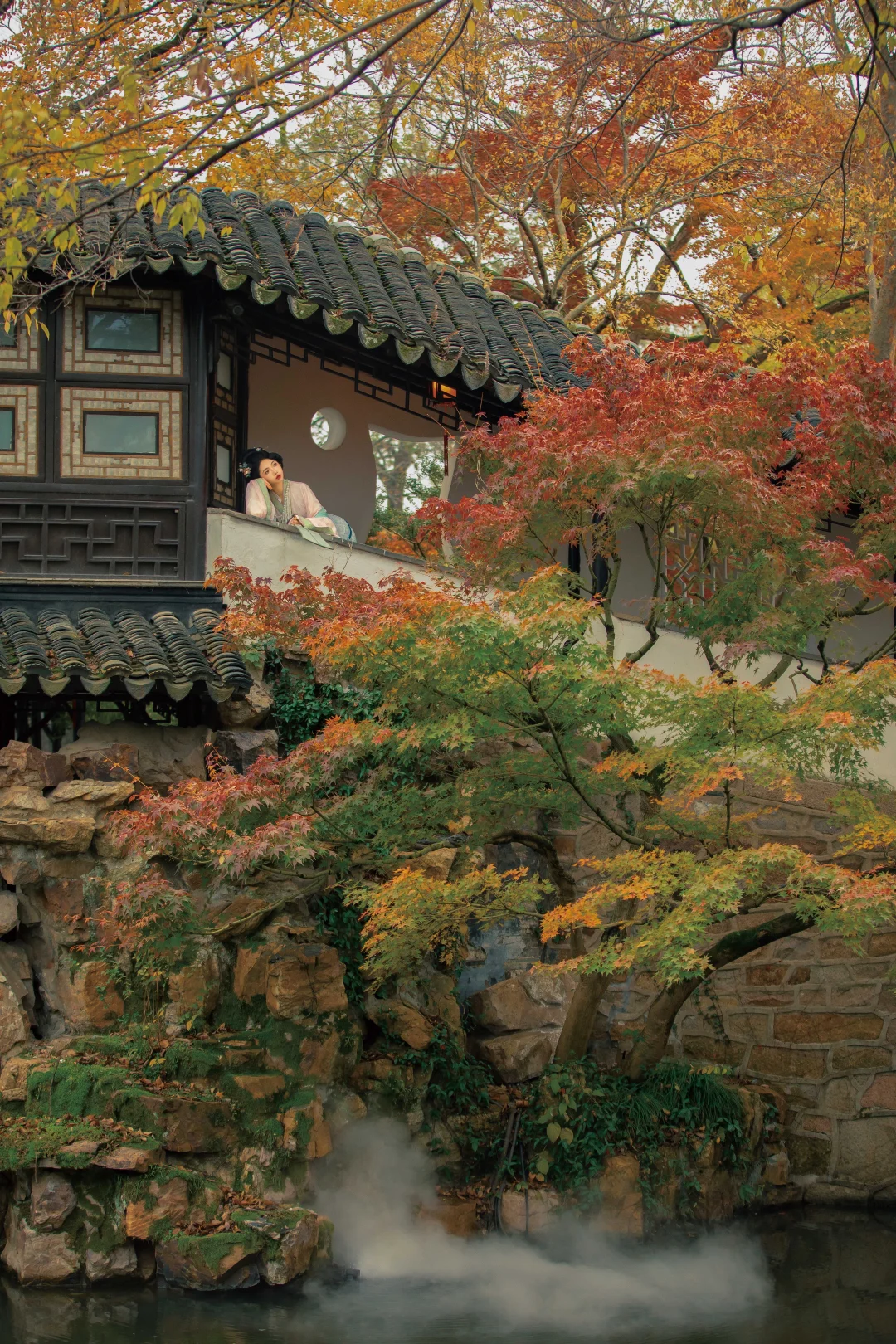 妹纸选图选的慢修好是春夏,留到现在秋天发发,不过苏州的枫叶要红得十一月底十二月初