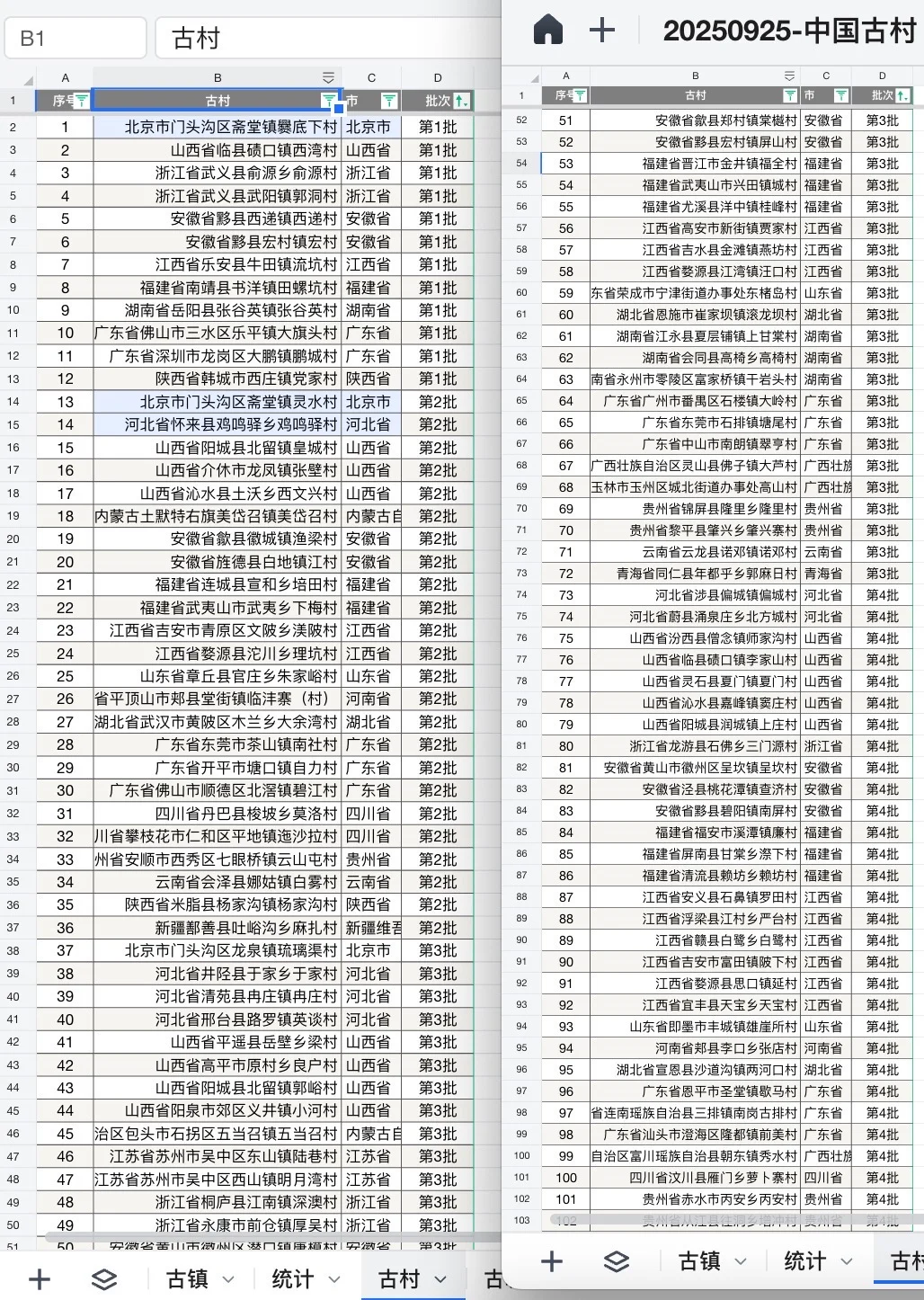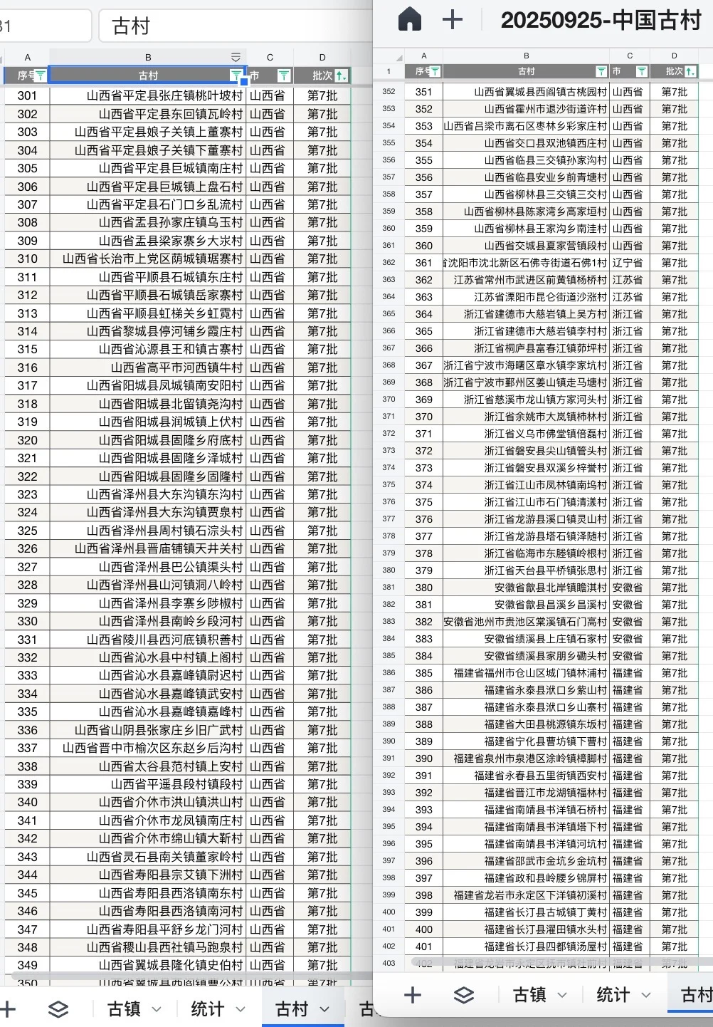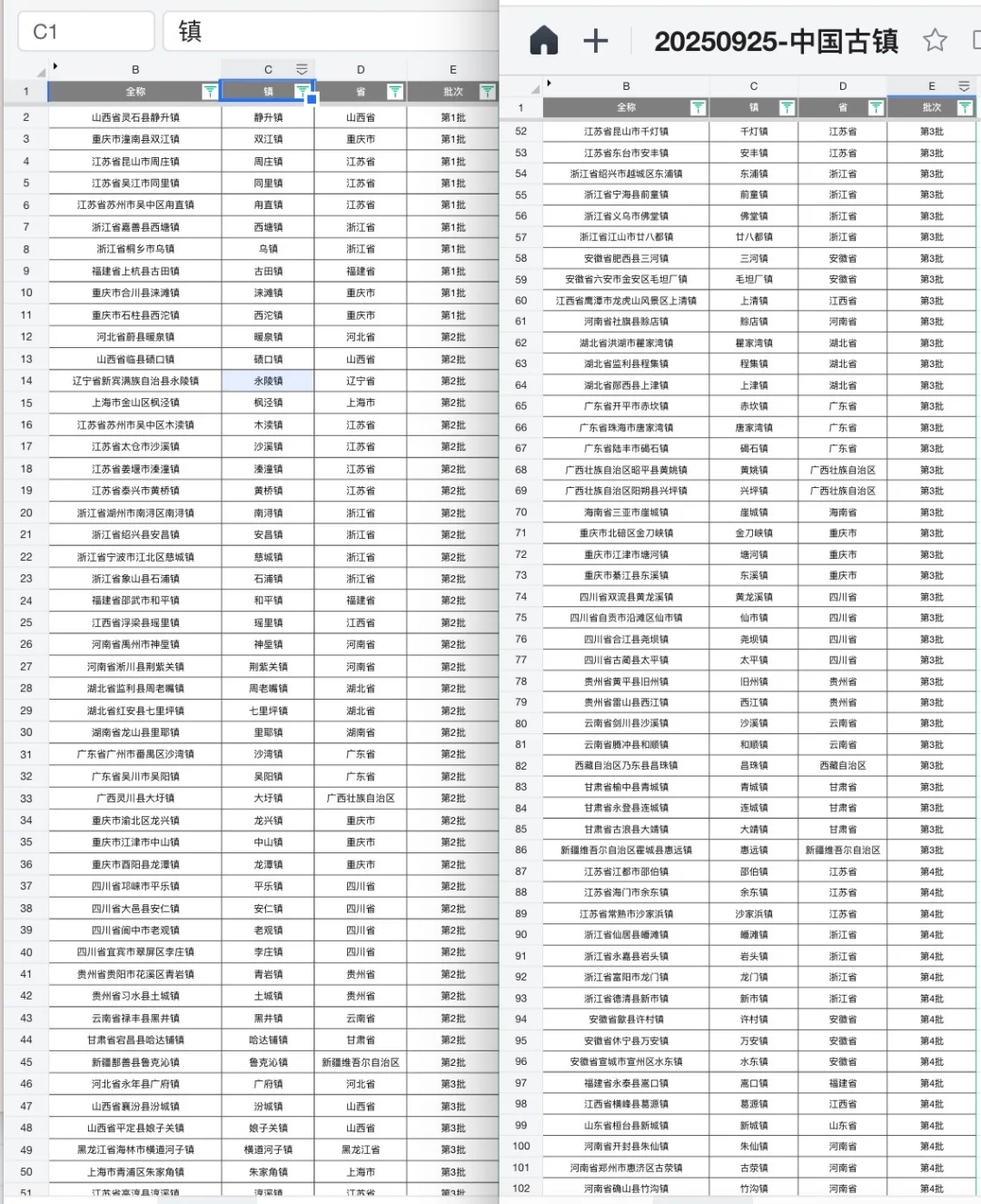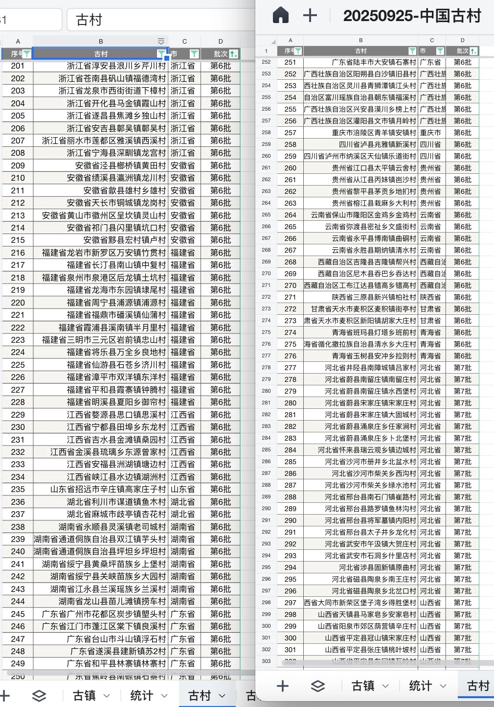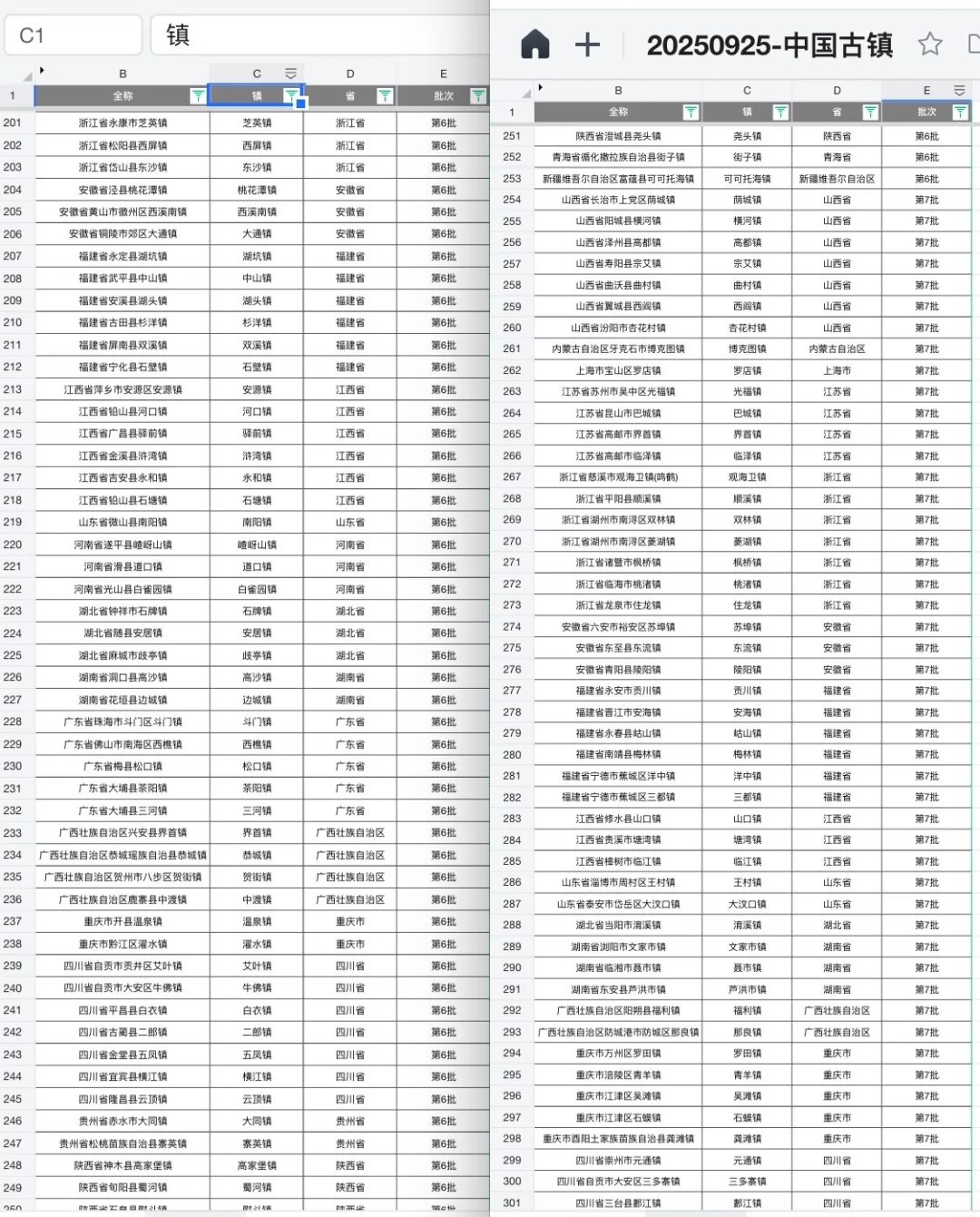[飞盘R][飞盘R]PS.之前根据其他维度,也整理了,大概有200个古镇/村