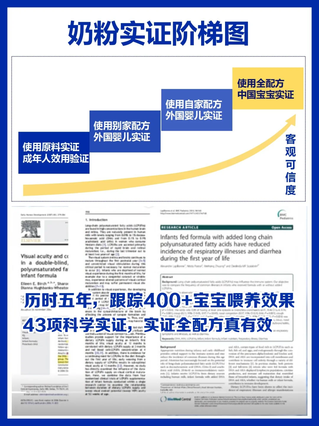 更让我安心的是它的实证效果。美赞臣历时5⃣️年随机双盲对照跟踪400➕中国宝宝👶的喂养效果,积累了43项科学实证,强势论证喝蓝臻的宝宝在自护力和认知力上表现确实更出色