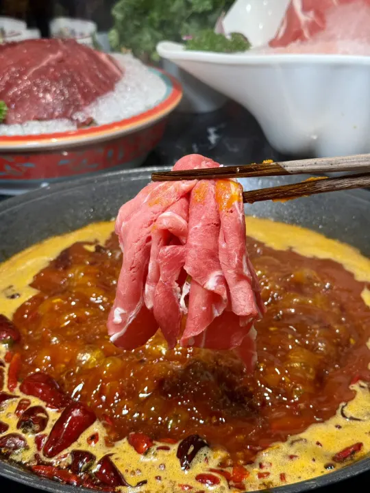纹理清晰的牛肉,品质一等一的好,肉肉熟了以后,嫩软香滑,辣劲过了还有点奶香